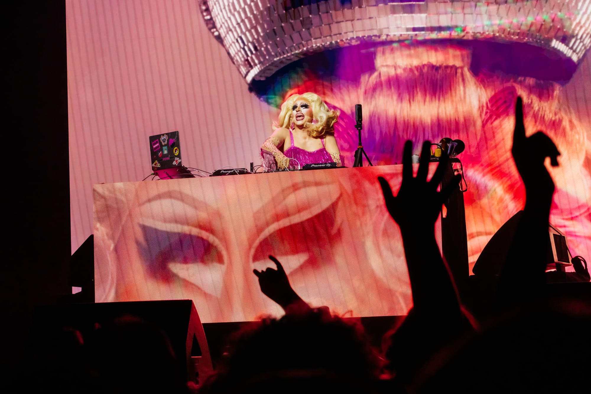 Decked out in sequins and polyester, a glittering crowd of thousands showed up ready to move. Before Trixie took the stage, warm-up acts DJs Adam Kraft and Mateo Segade and singer Snow Wife got us dancing and singing, and a standout performance by rising pop powerhouse VINCINT caused us to fall instantly in love.