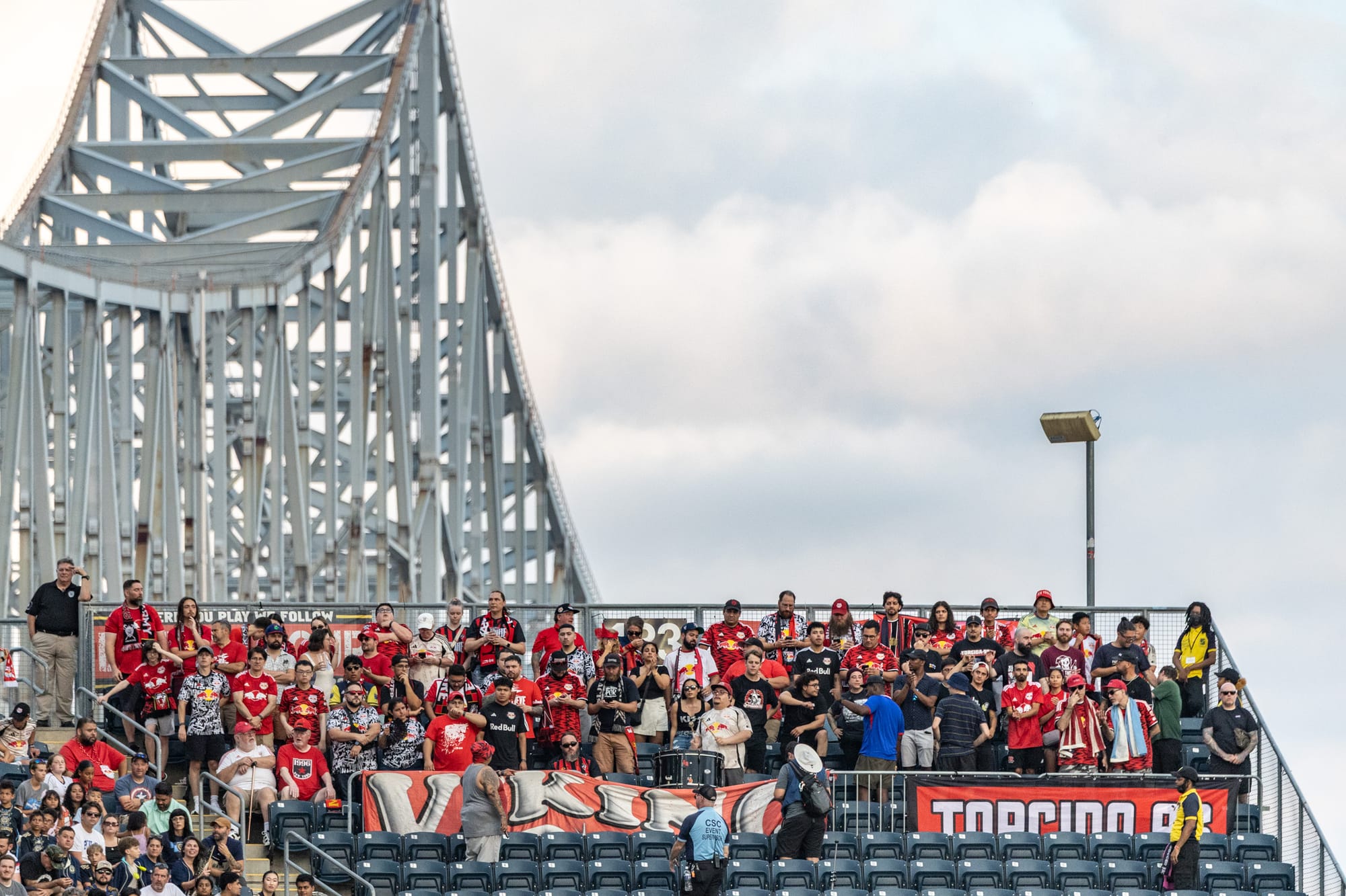 The New York Red Bulls team doesn't have a cool nickname for their ultra fans like we do, but some call themselves the "The Protectors of the Passaic," which is a river in New Jersey, not New York. They travel with their team and drum leader to let the Red Bulls know they're behind them, even if seated in the top-most corner of the stadium.