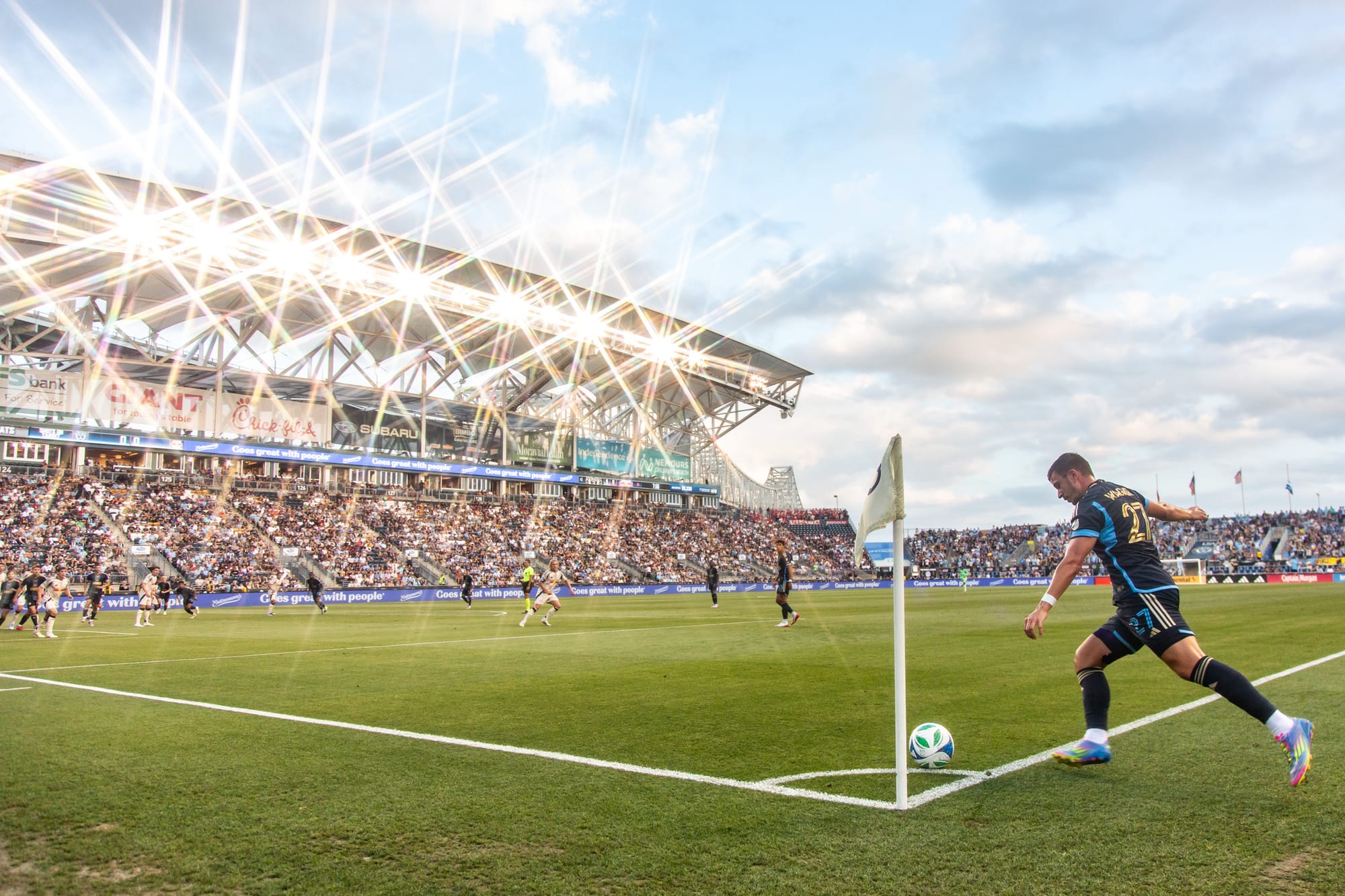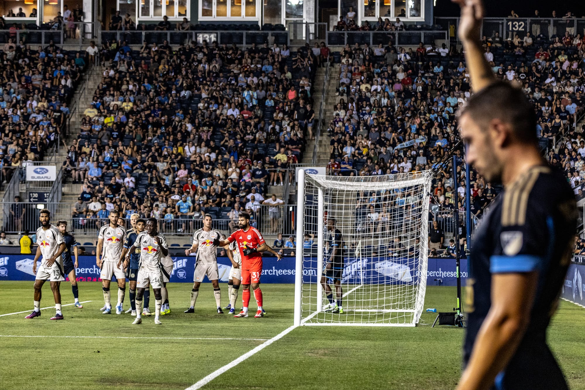 Union player Kai Wagner set up a corner kick on the Red Bulls goal as the Union fans cheered and the Red Bulls fans bit their nails hoping this kick wouldn't bring the score to 3-0.