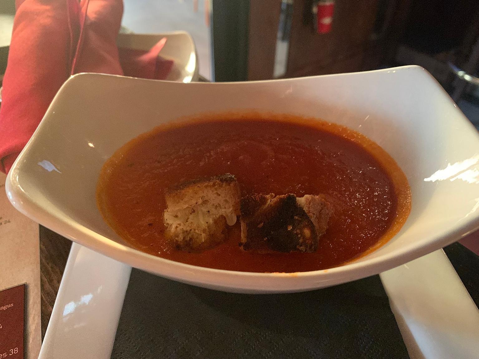 My first food item was the soup of the day, tomato. I’ve been on something of a tomato soup kick lately, so I was eager to try the Market Grille rendition of it. The soup was thick and hearty, with a good amount of salt, pepper and other seasonings to balance the tanginess of the tomatoes without overpowering it. I liked the additional touch of two large croutons and let them soak in the soup until the end of the dish before I ate them. So far, Market Grille wins for having my favorite tomato soup of the winter season.