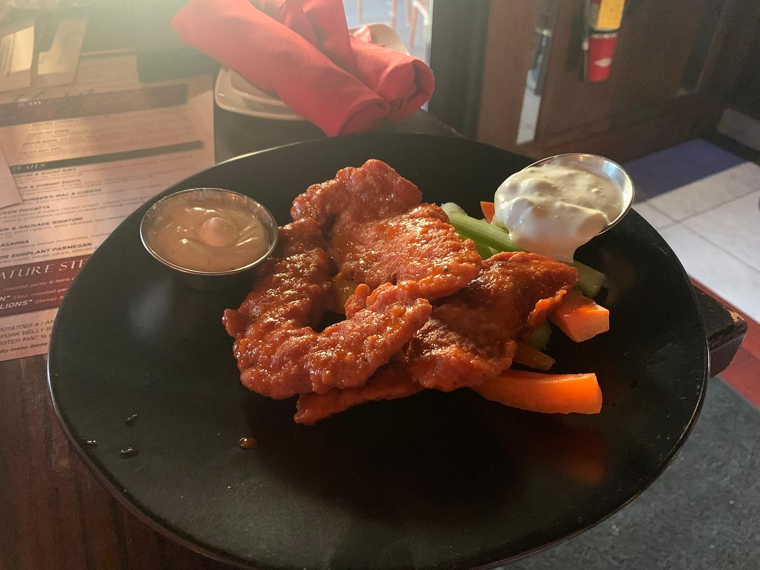 The one literal sour note of the meal was the chicken wings. The only choice available was boneless wings, which is not the way I usually like my happy hour wings. Boneless wings never have the right crunch, despite how they’re fried or breaded. I order boneless wings when I want something easy to eat, and that wasn’t the mood I was in. But I figured I’d order buffalo wings and give them a shot, in the name of trying something different.