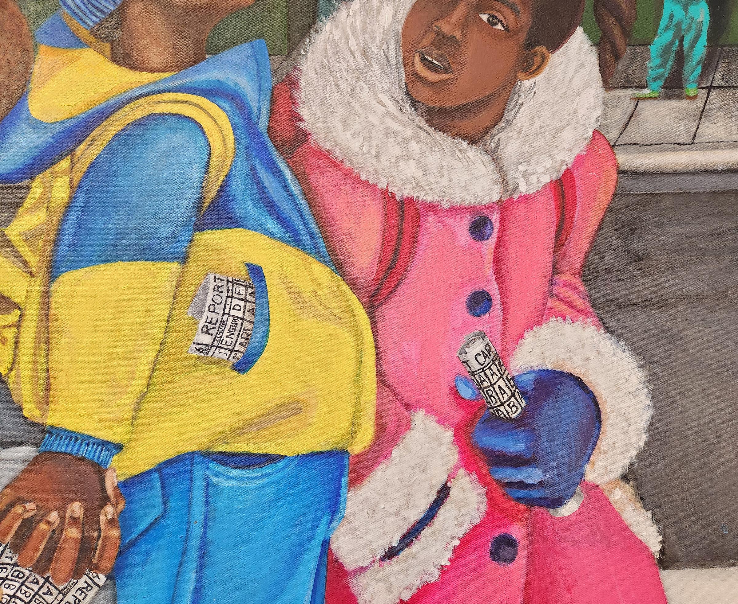 His pieces span over two decades of artistry, with his “Childhood Dreams” series beginning in 1998 and a number of pieces as recent as 2022. Most of the pieces, aside from the sculptures, are acrylic on canvas, with clear personal style and evolution visible, color choice and a slowly developing signature as a strong through line.