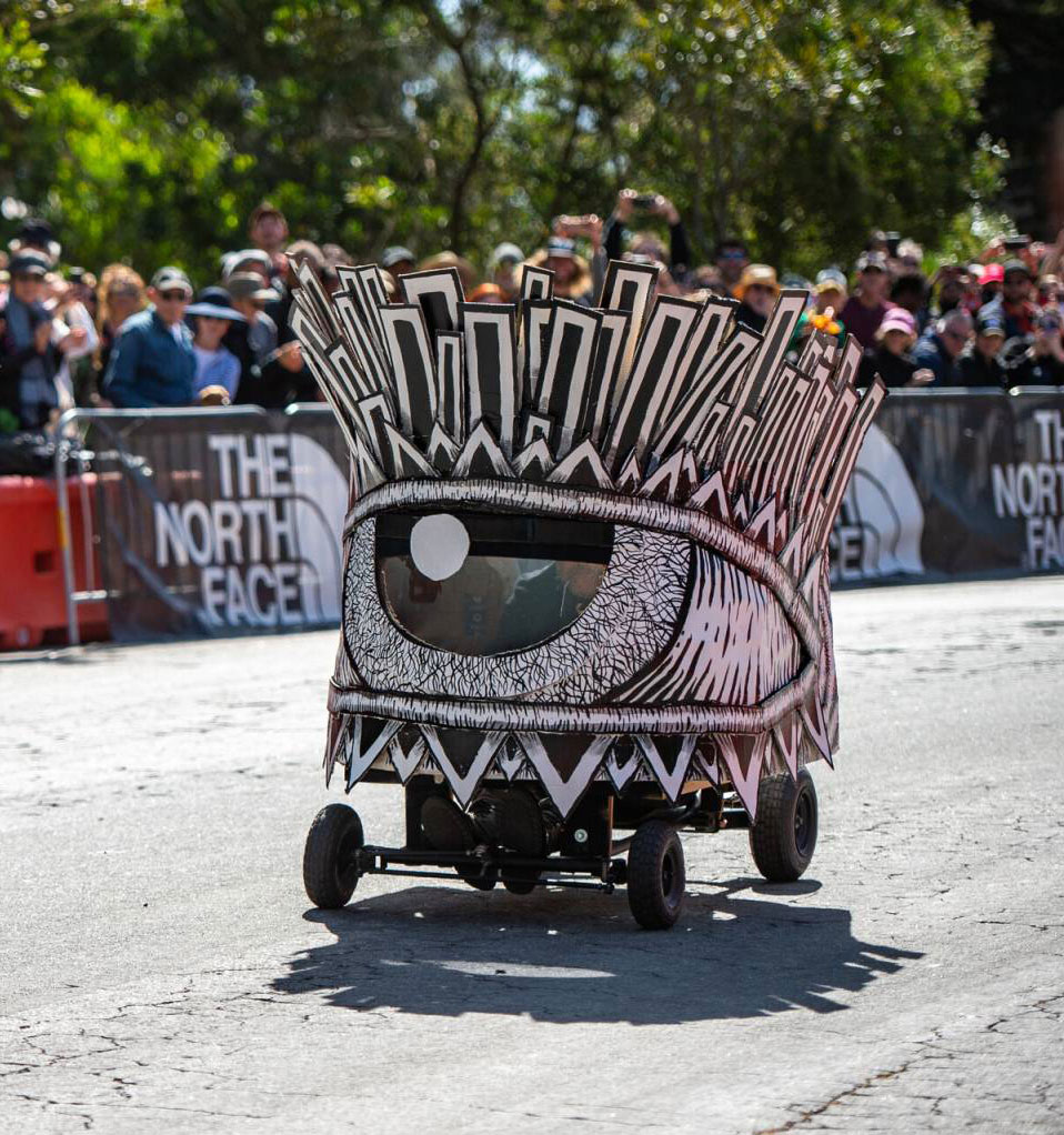 At Ellinwood’s suggestion I climbed the stairs to the neighboring Transmission Gallery before leaving, but stopped, arrested, midway up at the sight of John Casey’s “Big Eyes,” a continuation of his pleasantly absurd installations around the area. Even framed by painter’s tape and bisected by the window, the giant orbs called out.