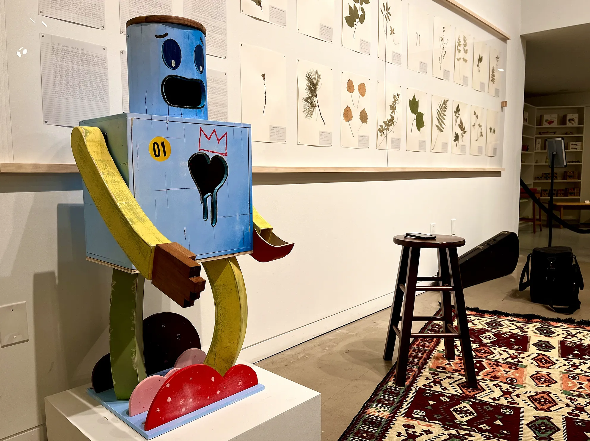 As the night’s live performers made their way to the front of the room and slam poets gestured to the rhythm of their own words, the robot stood frozen in place, the heart carved into his torso bleeding empty space.