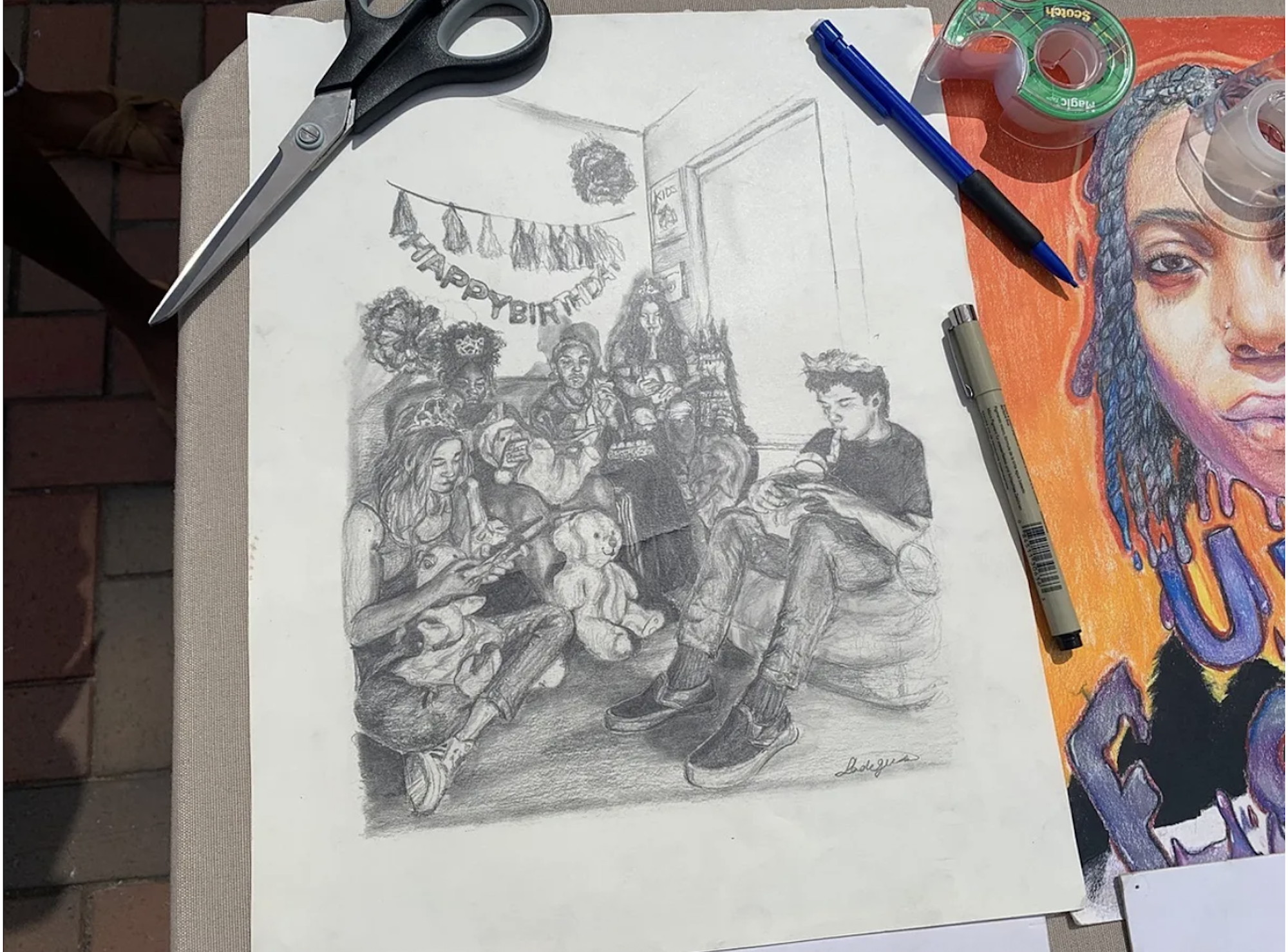 Sade is also a talented sketch artist as well, relying on her ability to recreate scenes with just a pencil and paper. She recounted the story of how she set up one of her favorite sketches, A Gen Z Birthday Party, by purchasing a bunch of party favors and then staging her friends to create the exact image she was looking for. She said it was fun to go from conceptualization to execution on such a project.