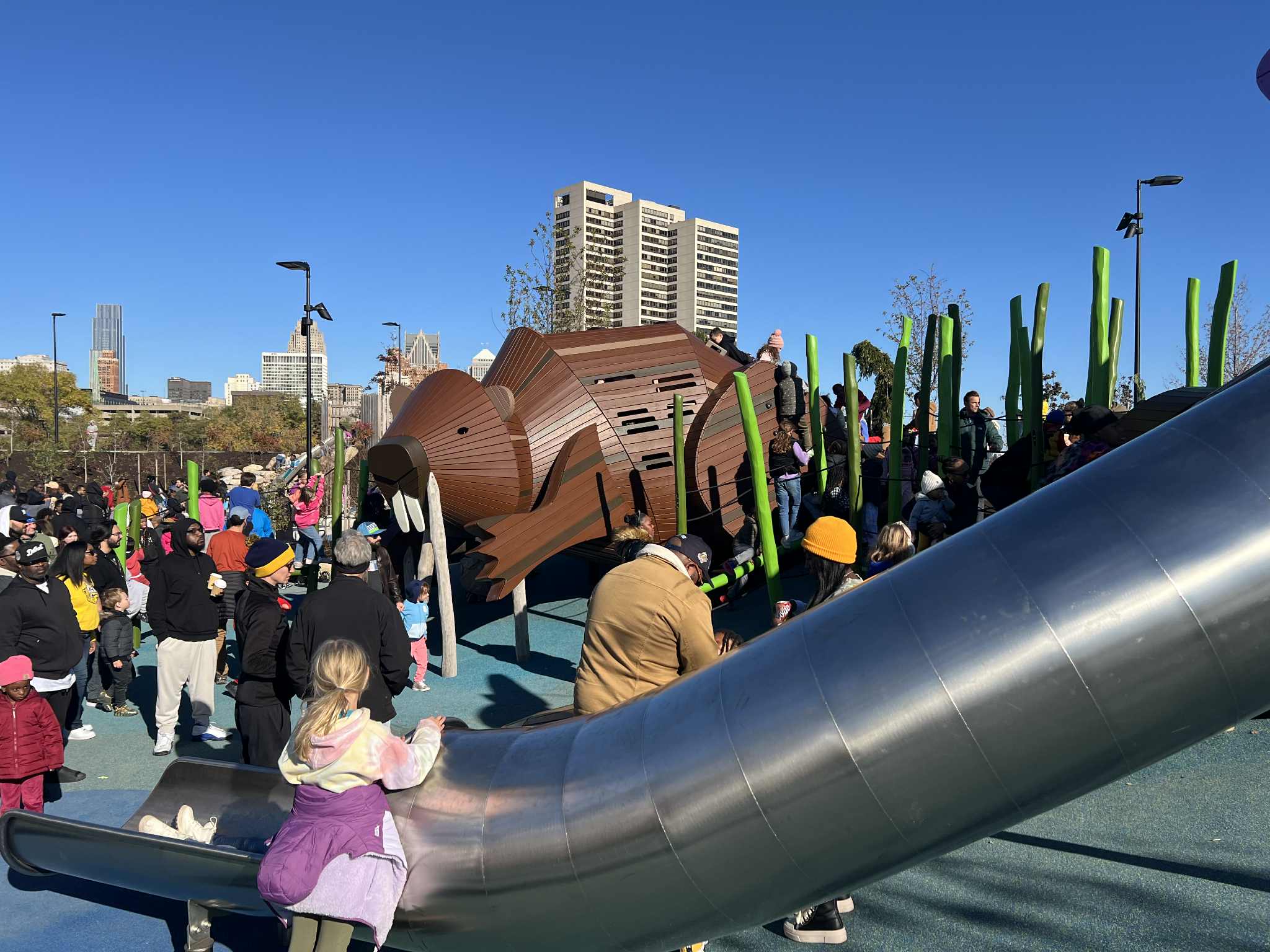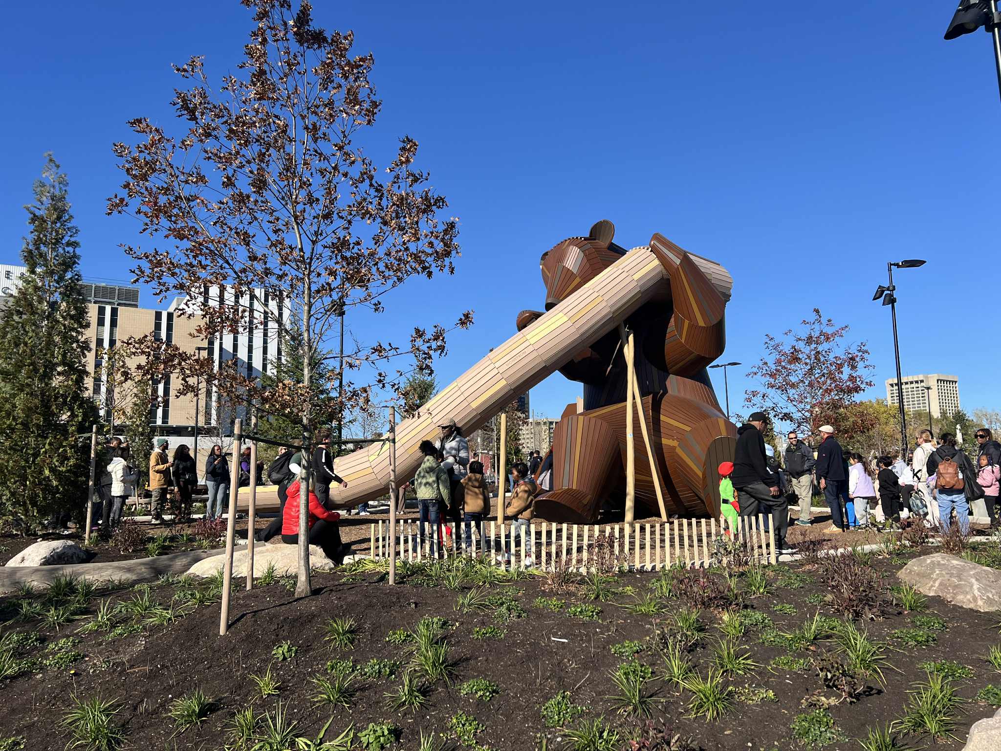 We lucked out with beautiful, sunny fall weather that showed off the park in its best light – literally. The most eye-catching space was the Delta Dental Play Garden, a whimsical playground with over-the-top climbing structures. The most dramatic were the slides, including ones attached to a giant bear, otter and beaver, in addition to an extra-long tower slide. It was – expectedly – chock full of kids that day, so I opted to wait for another time to try out the slides myself.