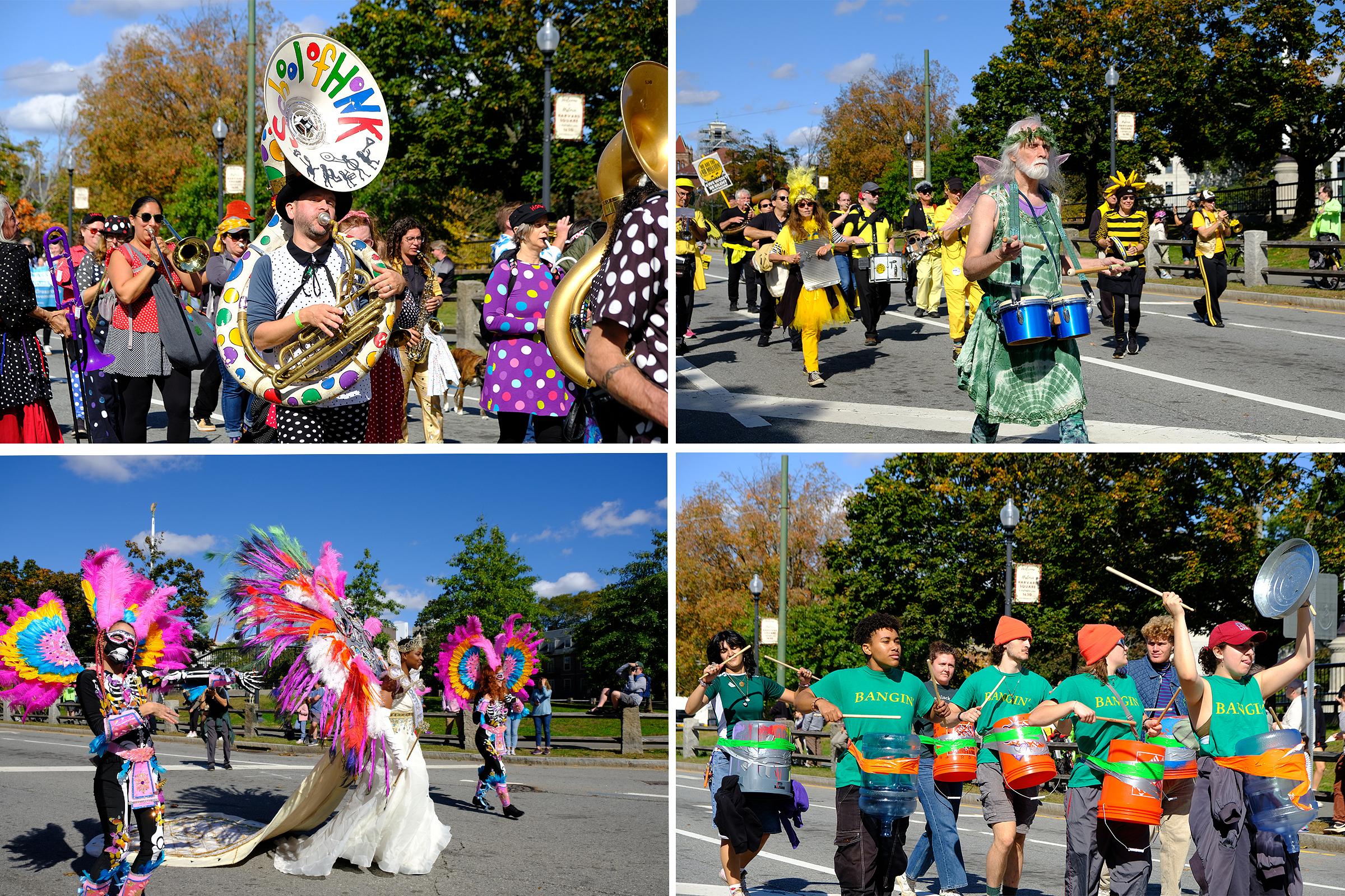 That was the scene as HONK! Fest took over Somerville this weekend, with polka-dotted sousaphones, LED-adorned trumpets, purple trombones, painted tubas, and even a lone banjo pumping a Mardi Gras-like spirit into the streets.