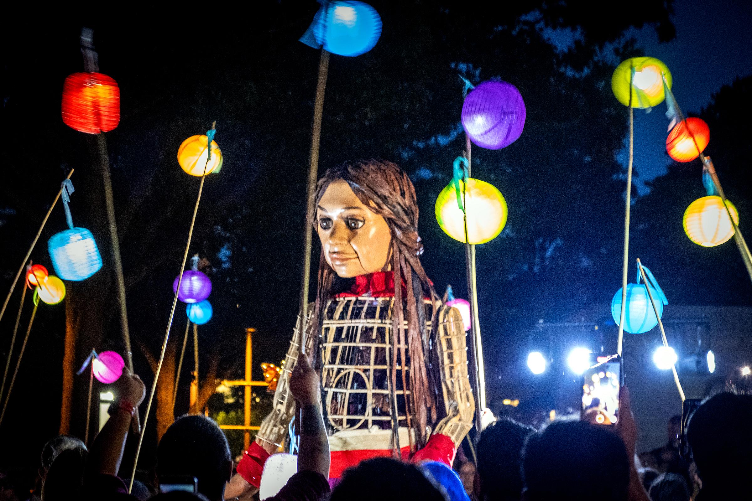 12-foot-tall puppet of 10-year-old refugee girl begins 6,000-mile coast-to-coast journey