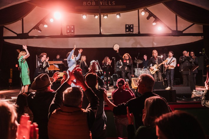 But the format of the show may make additional productions impossible. These concerts are, I have to stress, fantastic and singular. Each performance has a one-time-only exclusivity to it. Every song on the record is performed by the same house band, accompanied by a unique lead singer, for which the Center is able to recruit A-list talent. Once the record’s concluded, they take a set break and come back with a full second set of Dylan covers that range across his catalogue.