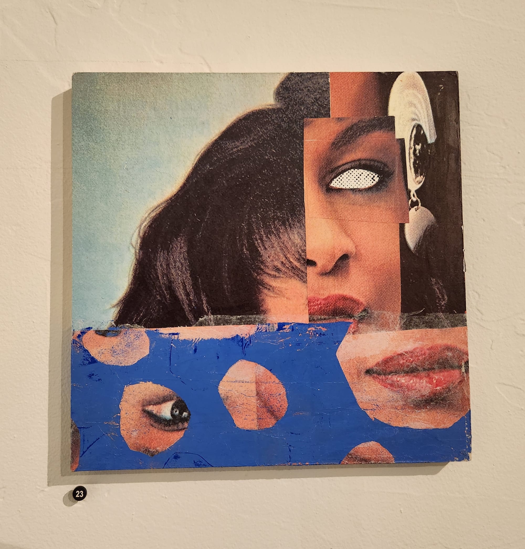 The subjects, however, are deeply intentional. Newspaper and magazine cuttings, superhero comics, famous artists, athletes are interspersed with pop-art and paint swatches, splotches, and sketches. Though anonymized, some faces remain easily recognizable, others an unsettling but lovely hodge-podge of features, a woman who never was but will now live on.