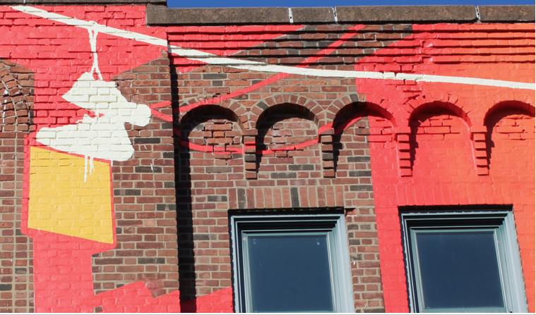 A detail from the former Goffe Street Armory's new communally produced mural, the city's largest. PAUL BASS PHOTO
