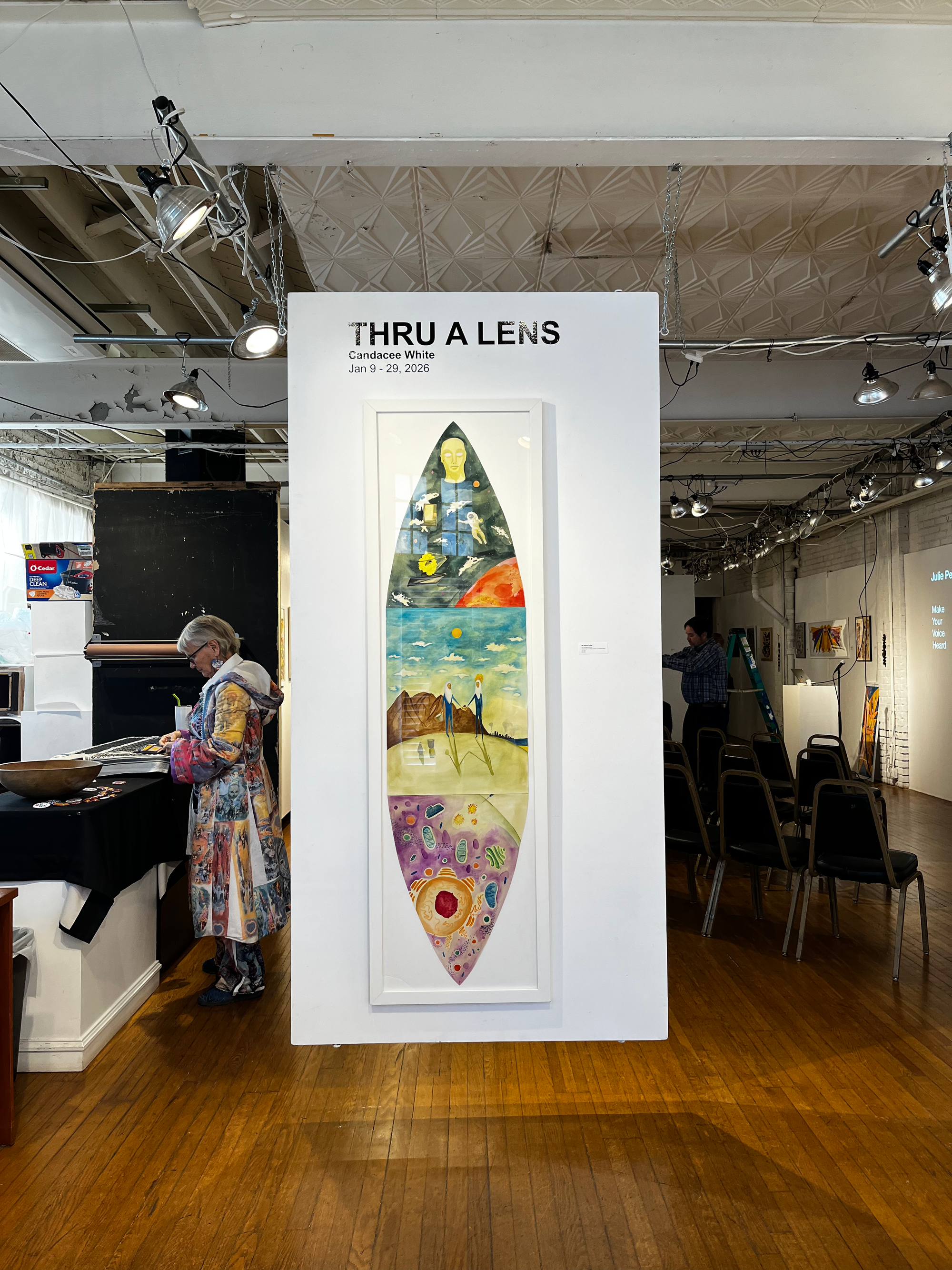Both maximalist and minimalist, metaphysical and very human, “Thru A Lens” left my brain buzzing when I walked out of the gallery. I find myself looking for lenses now everywhere, considering openings and interconnections, through my own lens-shaped eye.
