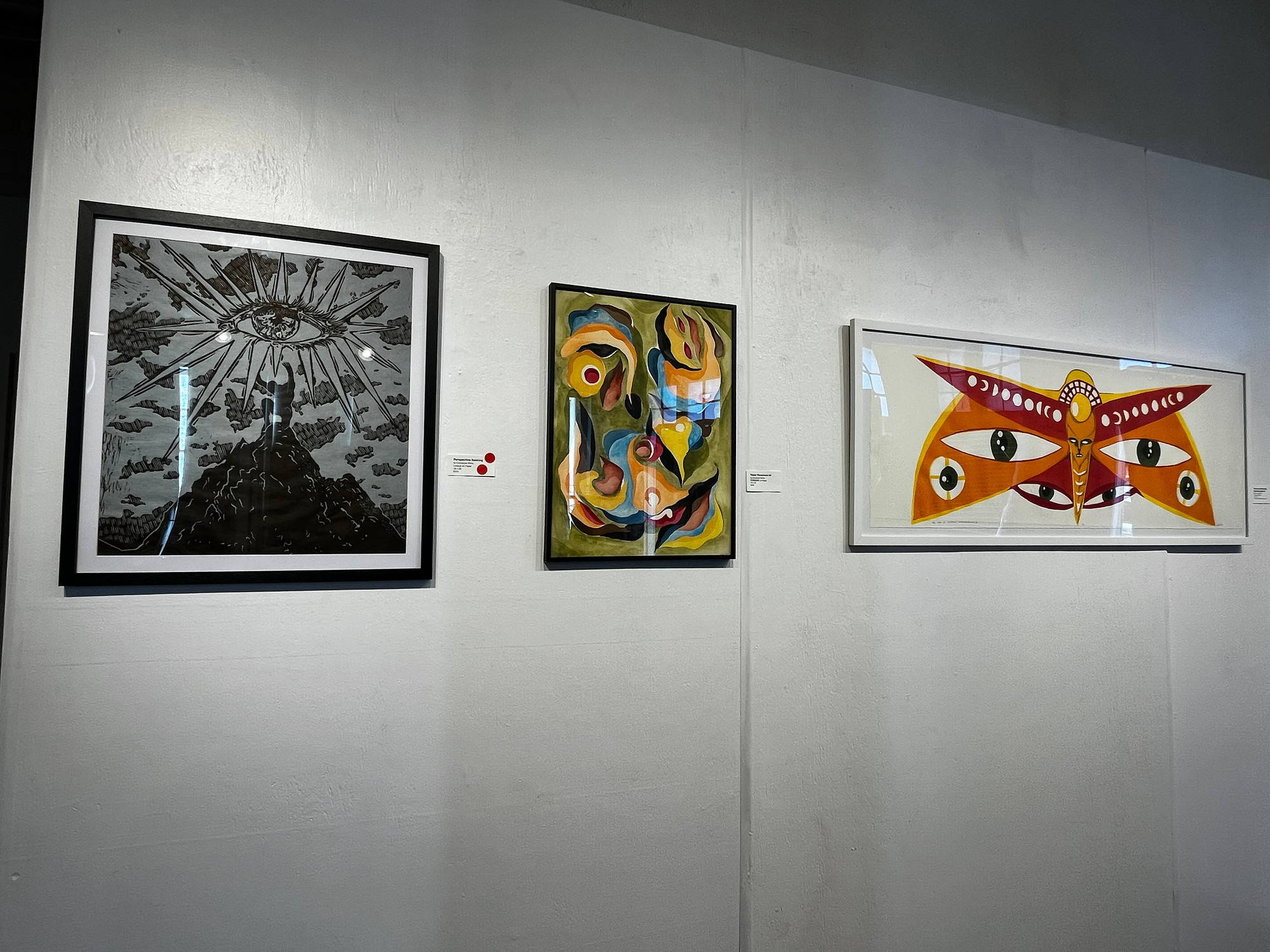 In “Thru A Lens,” on view through January 29 at Liggett Studio, Tulsa-based artist Candacee White focuses her inner eye on this humble but ubiquitous shape. She finds it here, there, and everywhere—from organic forms to spiritual iconography to sci-fi fantasies—and refracts her own imagination through its gentle curves. The result is a show that teems with ideas, histories, colors, and mediums—many elements interconnecting through the inspiration of a single form.