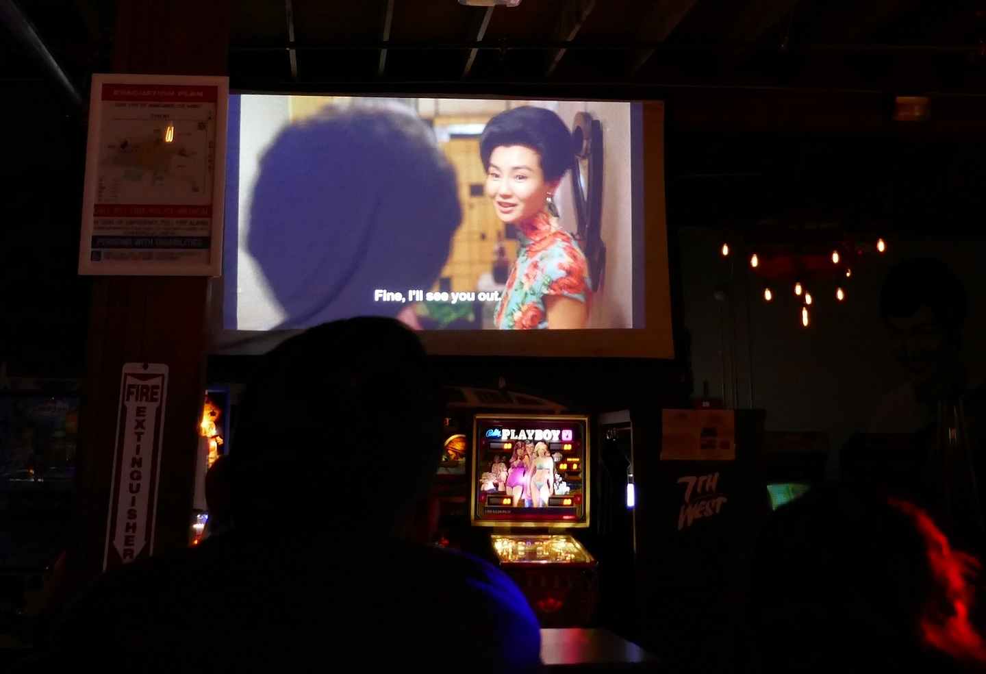 A bar and restaurant known for hosting all manner of parties, karaoke nights, and raucous community events might not seem like the ideal venue for a quiet movie night. But that was the kind of homey vibe that Kevin Pelgone, a co-owner of 7th West bar and the curator of its “Cozy Cinema” series, wanted to capture. And the bill this past Thursday night — ”In the Mood for Love” by Wong Kar-Wai, followed by “Moonlight” by Barry Jenkins — seemed tailor-made for movie nerds like me. The fact that the space also serves Filipino snack foods like lumpia, along with calamansi-flavored beer, cemented my decision to venture into West Oakland to check it out, if only to meet the genius who thought of pairing some of my favorite things together.