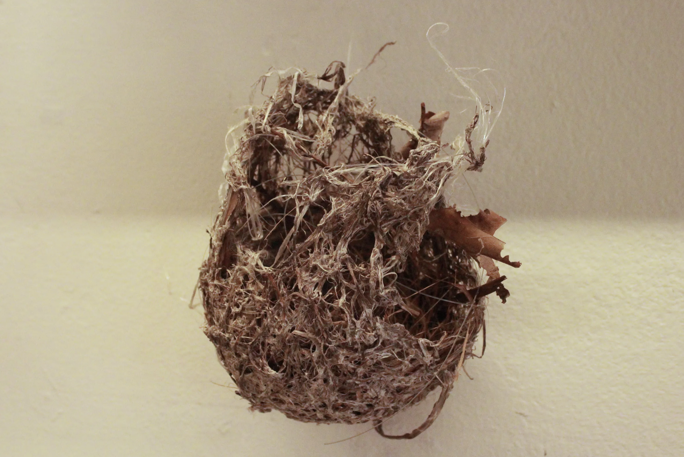Most people admire the structure of a bird’s nest when they see it, but it’s another step for Anita Balkun to have collected and preserved a series of them well enough to present them, floating on a line on the gallery wall. They have no monetary value, and eventually they fall apart. But there’s no denying the pleasure in appreciating the structures Balkun has saved.