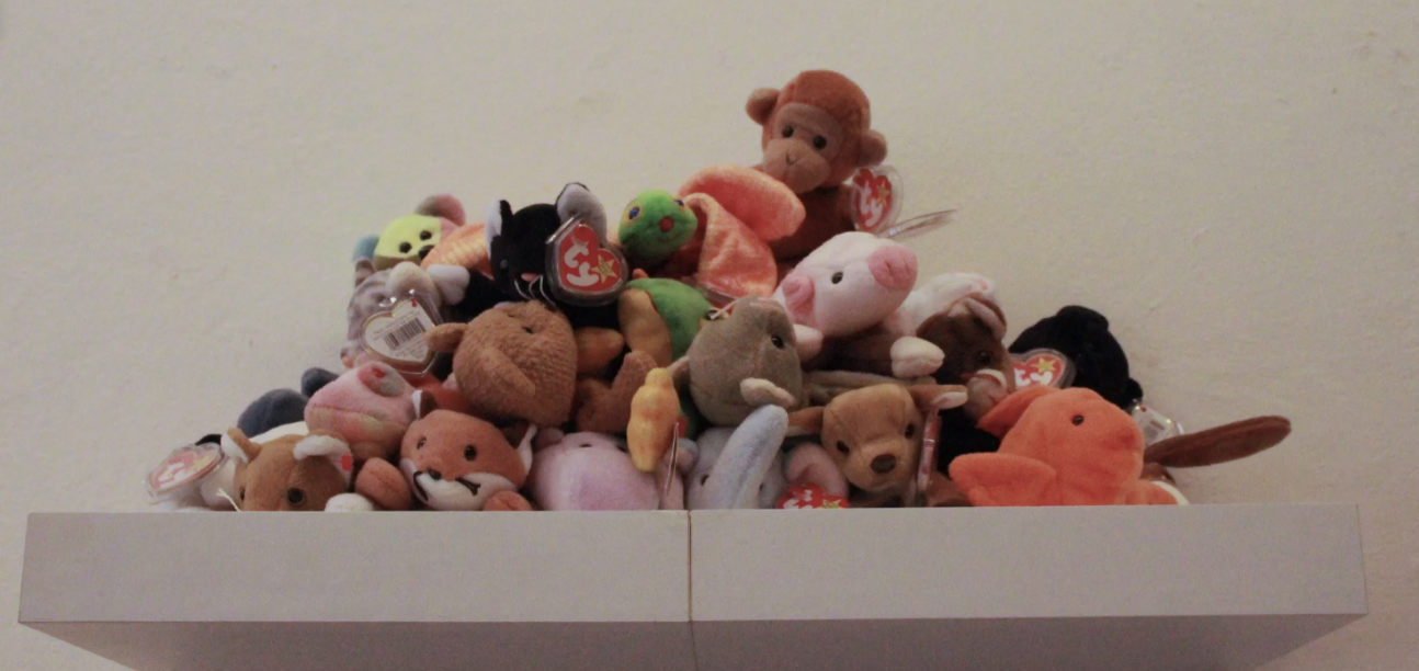Joy Bush’s pile of Beanie Babies shows, whimsically, how a collection can be a bit of both. The plush toys enjoyed a moment of extreme popularity, and for some people who still love them, they have real emotional and economic value. Someone who wasn’t around for the initial craze, though, is unlikely to value them as highly. Some people would pay a lot for a rare Beanie Baby and experience a flush of pleasure at acquiring one; other people would see them as something to give away. None of this takes away from the toys’ intrinsic, goofy appeal.