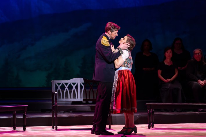 Tulsa Opera Filstrup Resident Artist Sam Briggs stepped into the leading man role here. His Captain von Trapp was less strict than emotionally stilted, unsure how to open himself up to love again now that he’s a widower, and too scared to try. His unmelting was subtle but purposeful, leading to one of my favorite moments in this production, when Maria and Captain von Trapp confessed their feelings to one another. The tension between Gambatese and Briggs was palpable—so much so that their inevitable kiss elicited an uninhibited, gleeful shout from a young tween girl in the audience behind me, which began a bubbling chain reaction of young giggles and giddy murmurs throughout the audience. It was something you could only experience watching a live performance.