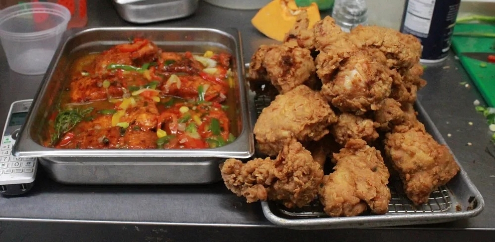 Damian Clarke, chef and owner of Jammin Jamaican Cuisine at 611 Washington Ave. in the Hill, set to work preparing a salmon entree that has become one of the restaurant’s more popular dishes.