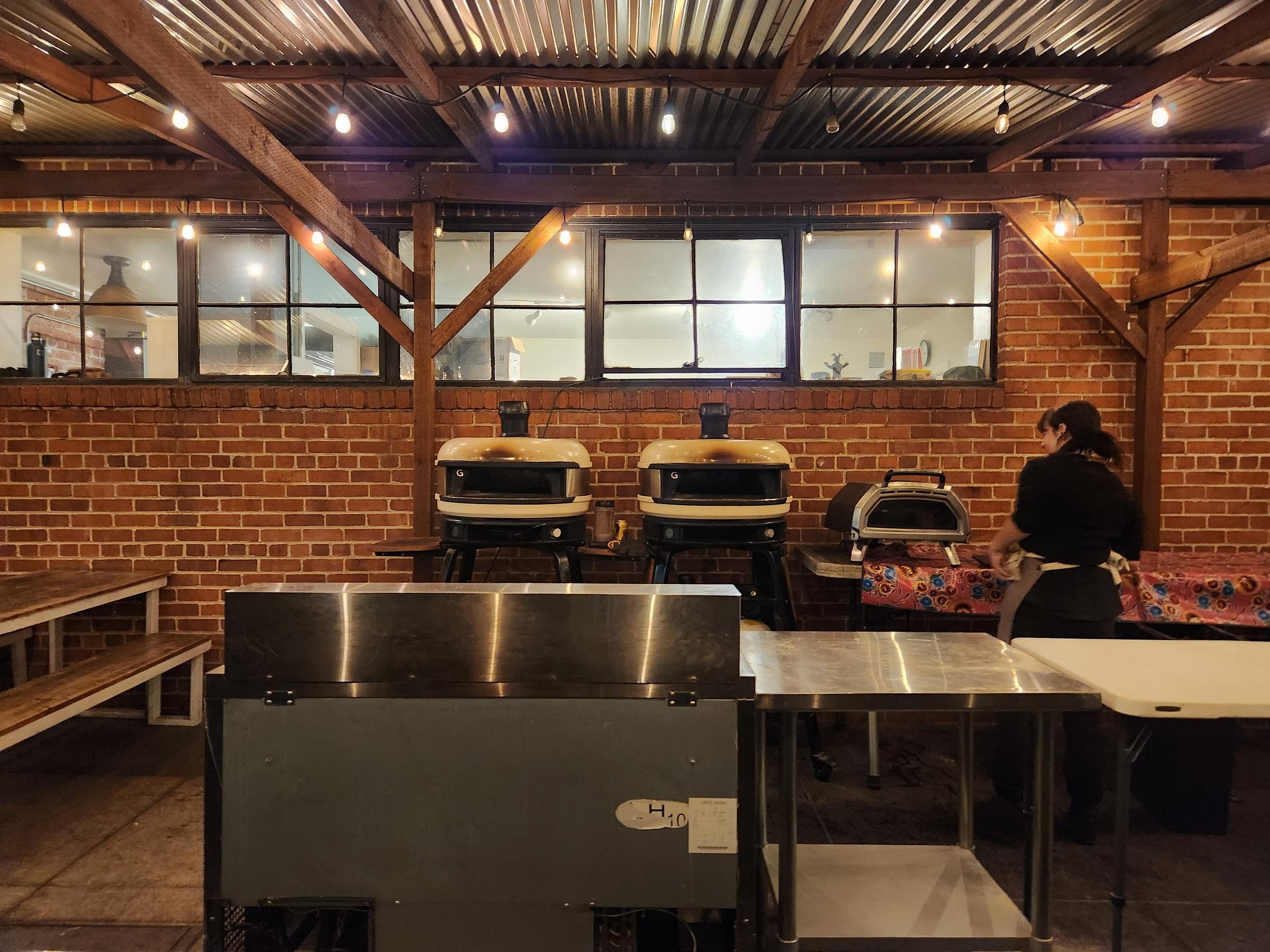 My friend arrived to meet me, and we walked back out the front door to the patio, where Citizen Pizza, the brewery’s “resident pop-up,” served up fresh pies from portable ovens.