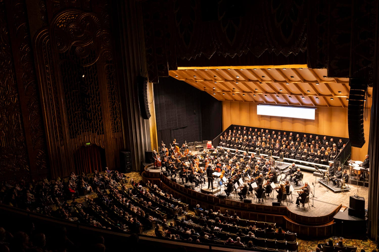 There’s a constant rumble just beneath the surface, and when that subtle grumbling is eventually released it’s explosive. Even in their slow movements, where the music is subdued, Beethoven’s symphonic compositions possess an undercurrent of tension. The most famous of these glorious eruptions is, of course, the final movement of Beethoven’s Ninth Symphony. Who doesn’t recognize the fraught, soaring, tympani-heavy choral of “Ode to Joy”? Hearing it is exhilarating enough, but seeing it performed live is an electrifying experience. Last Friday, the Oakland Symphony and Chorus, conducted by Kedrick Armstrong, brought it with big, booming, roaring intensity. The Finale, Presto—Allegro assai vivace, raised me from my seat to raise a hand with the sign of the horns as though at a metal show. Ludwig Van!