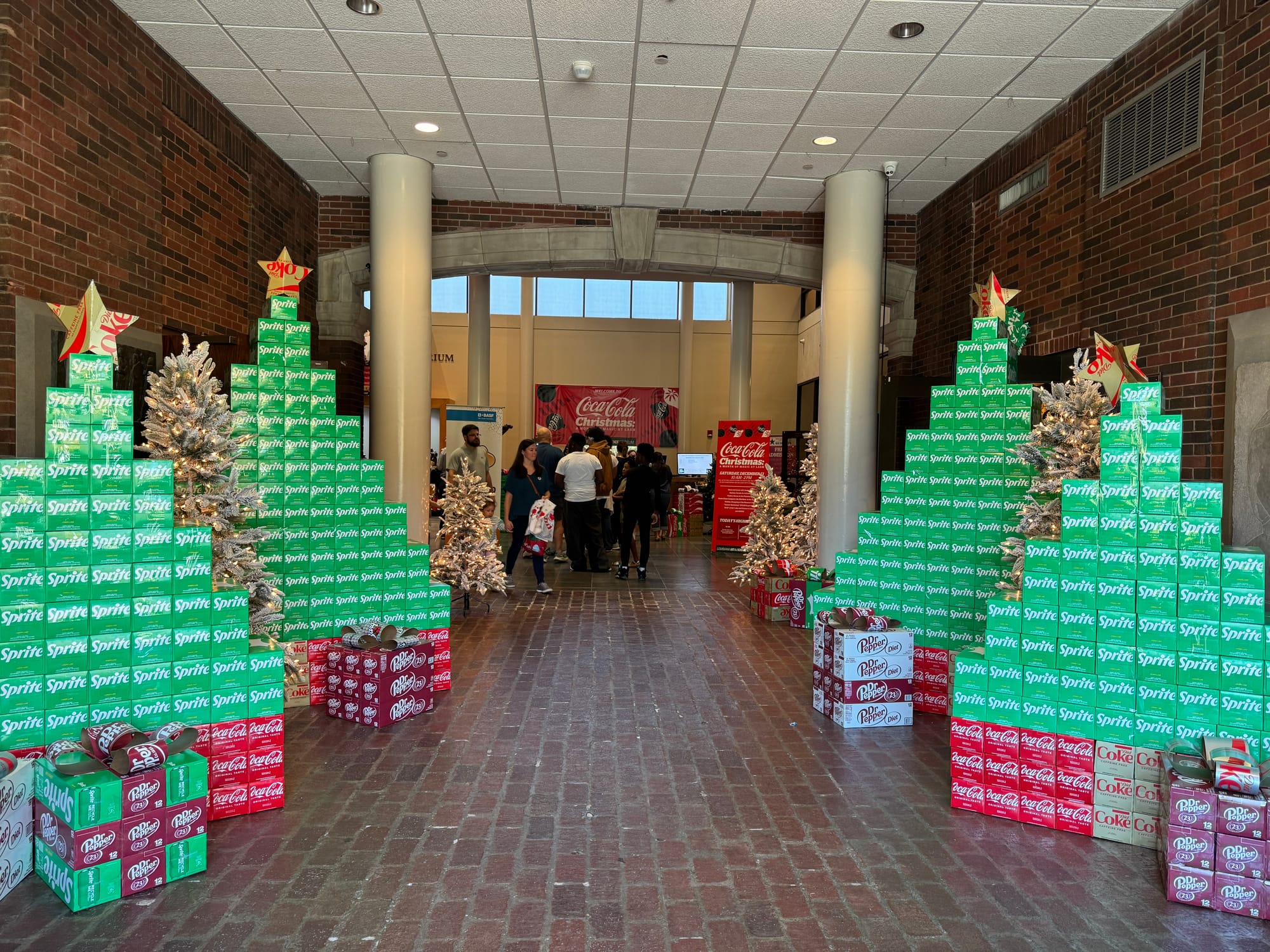 The whole display is legitimately impressive. It feels designed for the space, not a generic Christmas wonderland they pulled from a box and hauled out every year. In a separate room, Santa poses with kids in front of a massive Coca-Cola box fireplace. Similar to First Free Sunday activities, the event is attended mostly by families with young children.