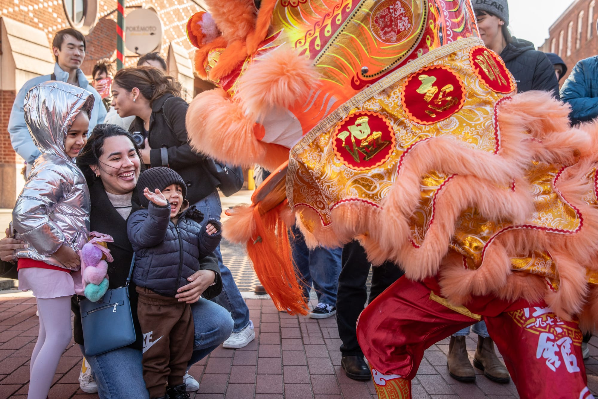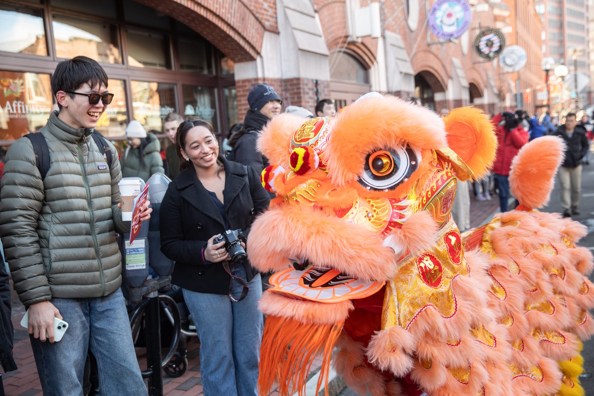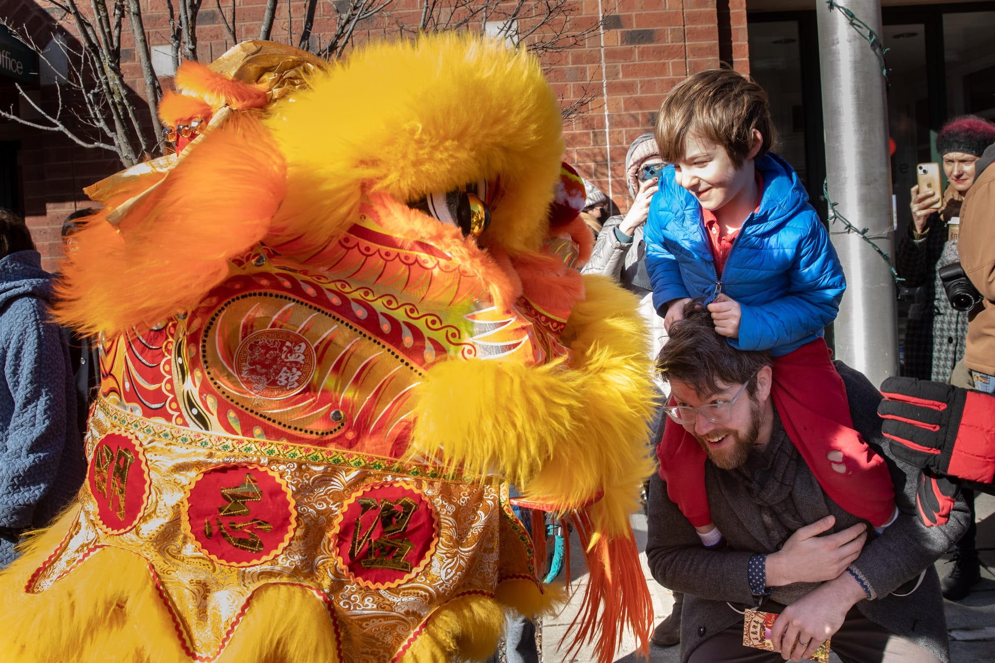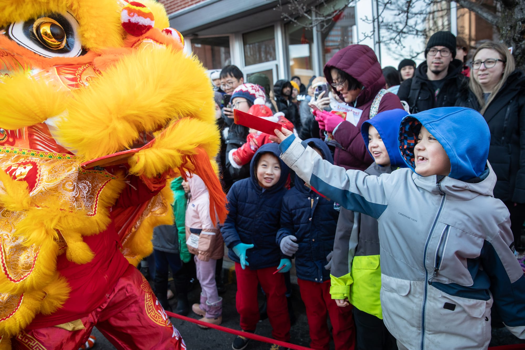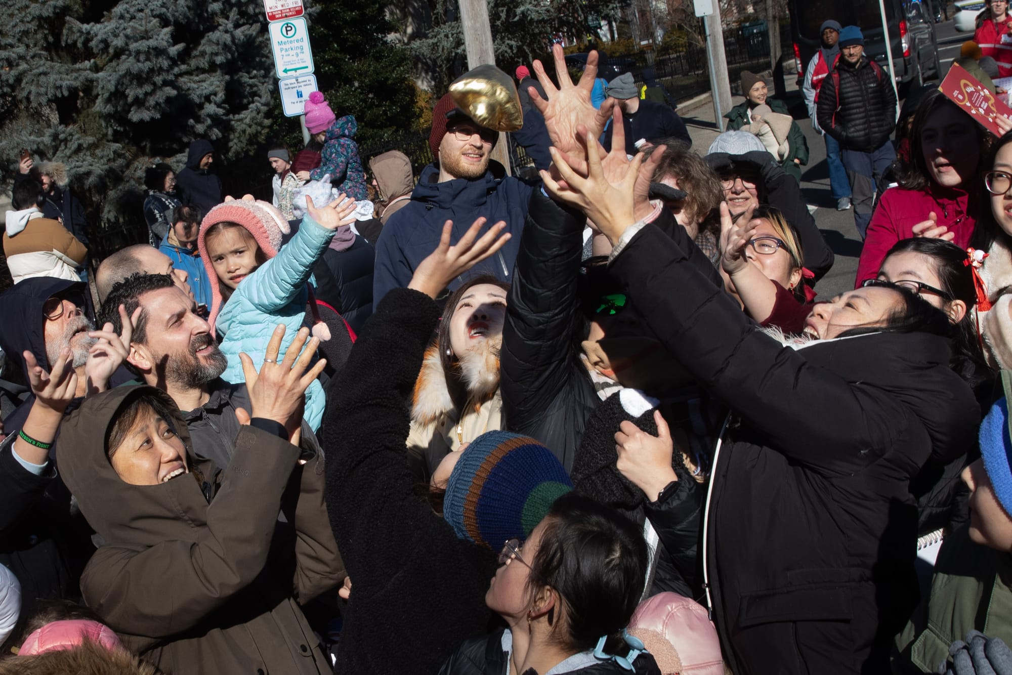 Parade-goers reached for yuanbao, symbolic gold ingots representing wealth and prosperity, “spit”out by the lion.
