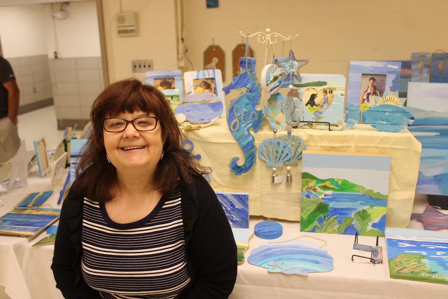 “I’ve got woodwork, canvases, magnets, sea horses, hangars, fish, peg boards and more,” she said, darting around the booth to show me her various products. And she really did have all of that and more.