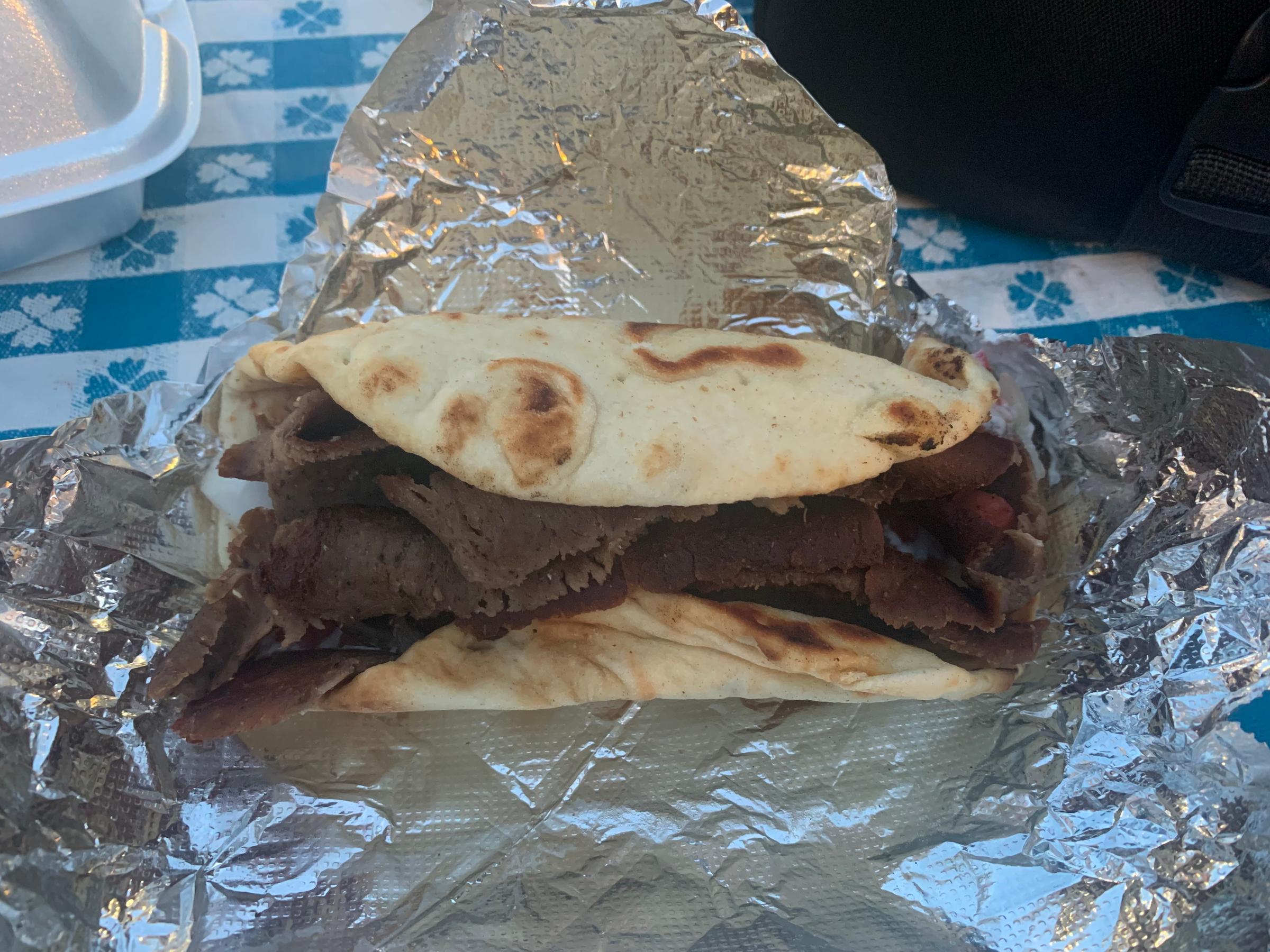 And the kids were right. I got a lamb gyros that tasted amazing. The lamb was tender but well cooked, with a salty, rich flavor that was mediated by just the right amount of tzatziki, a white sauce inside the pita.