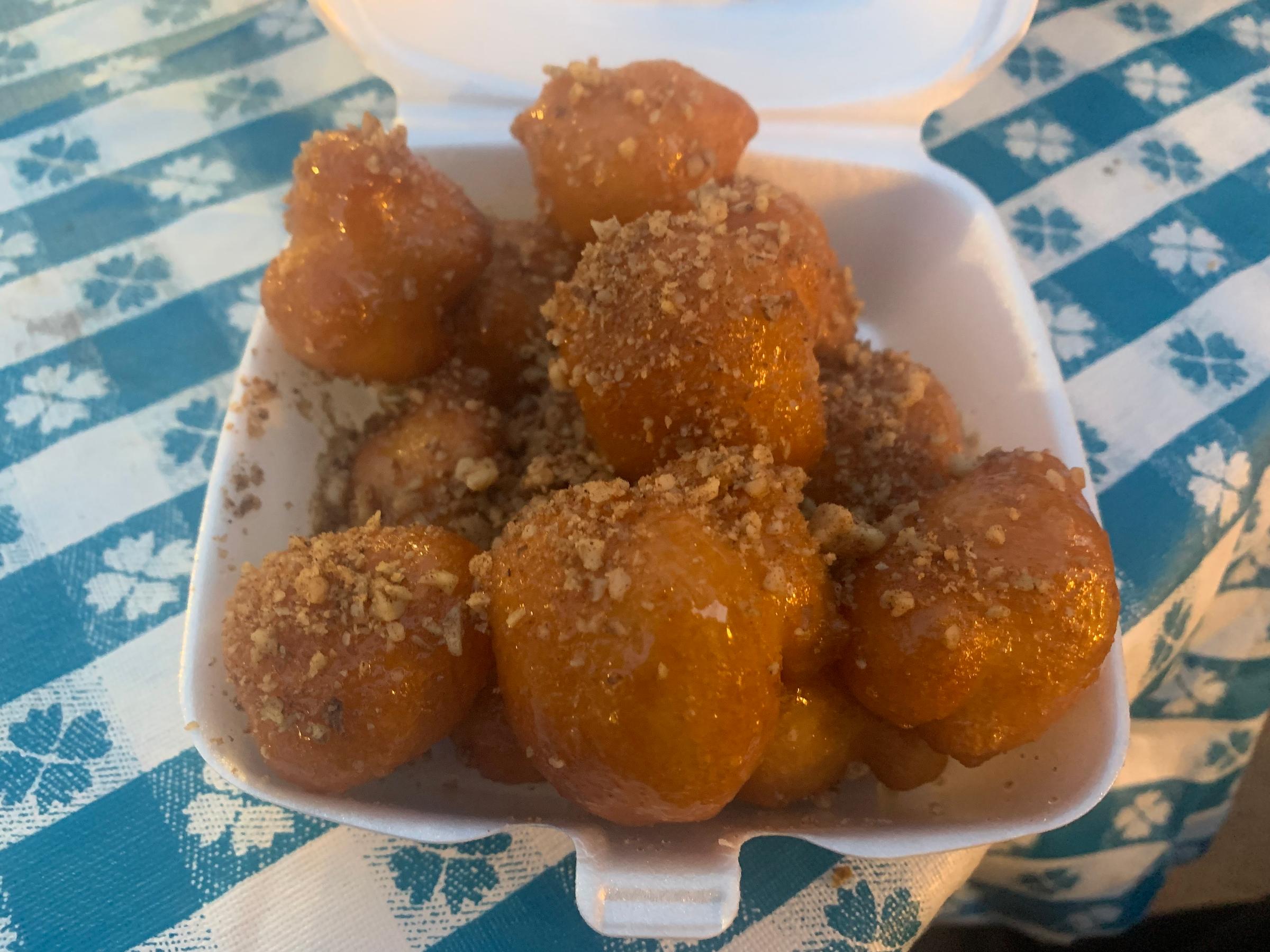 The loukoumades were my favorite. They’re like donut holes, but fried a little harder and covered with honey and nuts. They’re the perfect dessert because they’re not too sweet, so I could stuff myself with them without feeling like I was overdoing it.