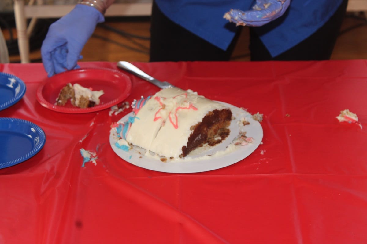 “We were trying to decide what flavor to make and we decided since America is about freedom of choice, we would give people a choice of which cake they wanted,” he explained. His entry was a two layer cake, with the bottom layer consisting of chocolate cake with a salted caramel filling, and the top cake consisting of funfetti with a funfetti buttercream filling.