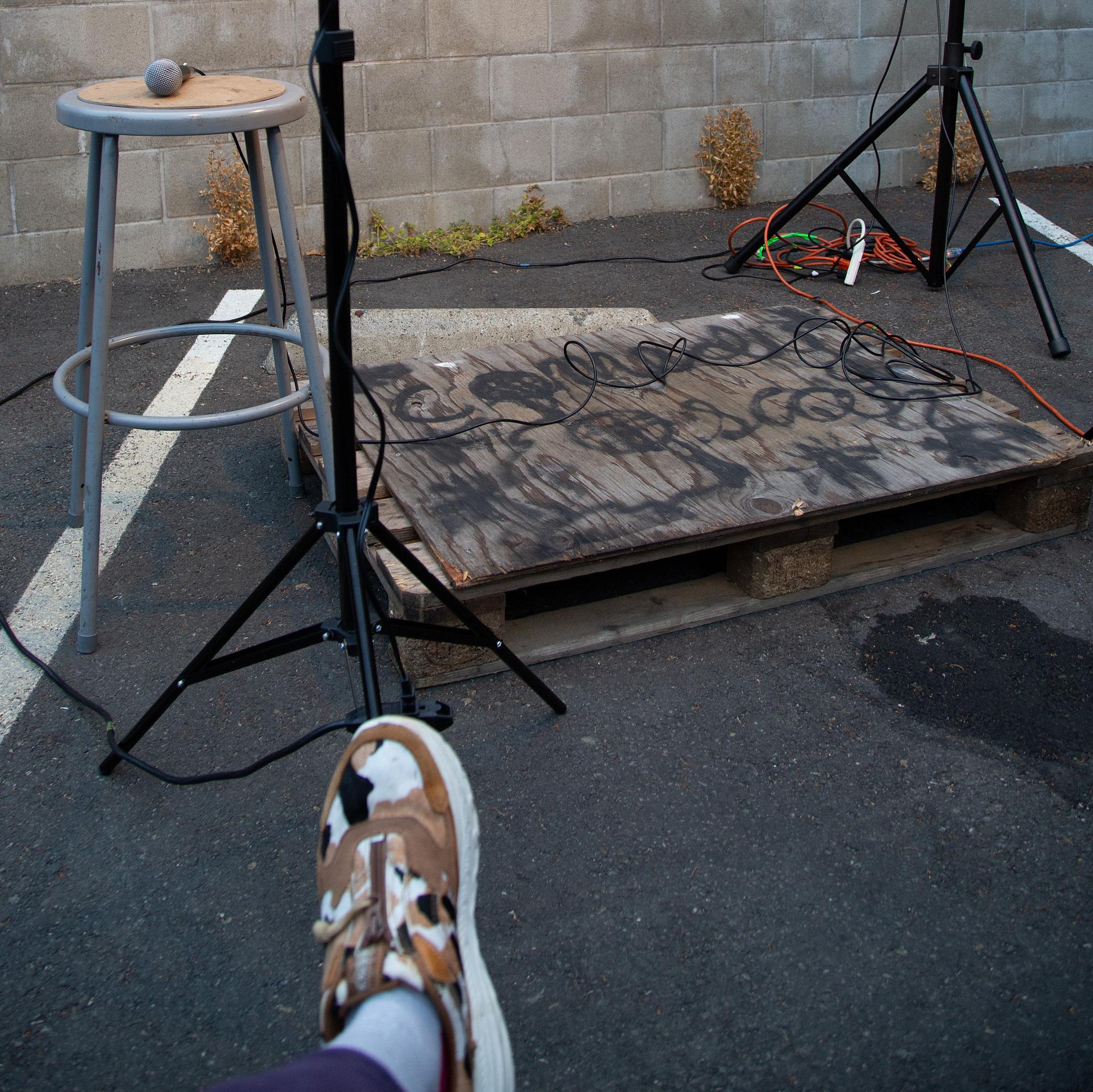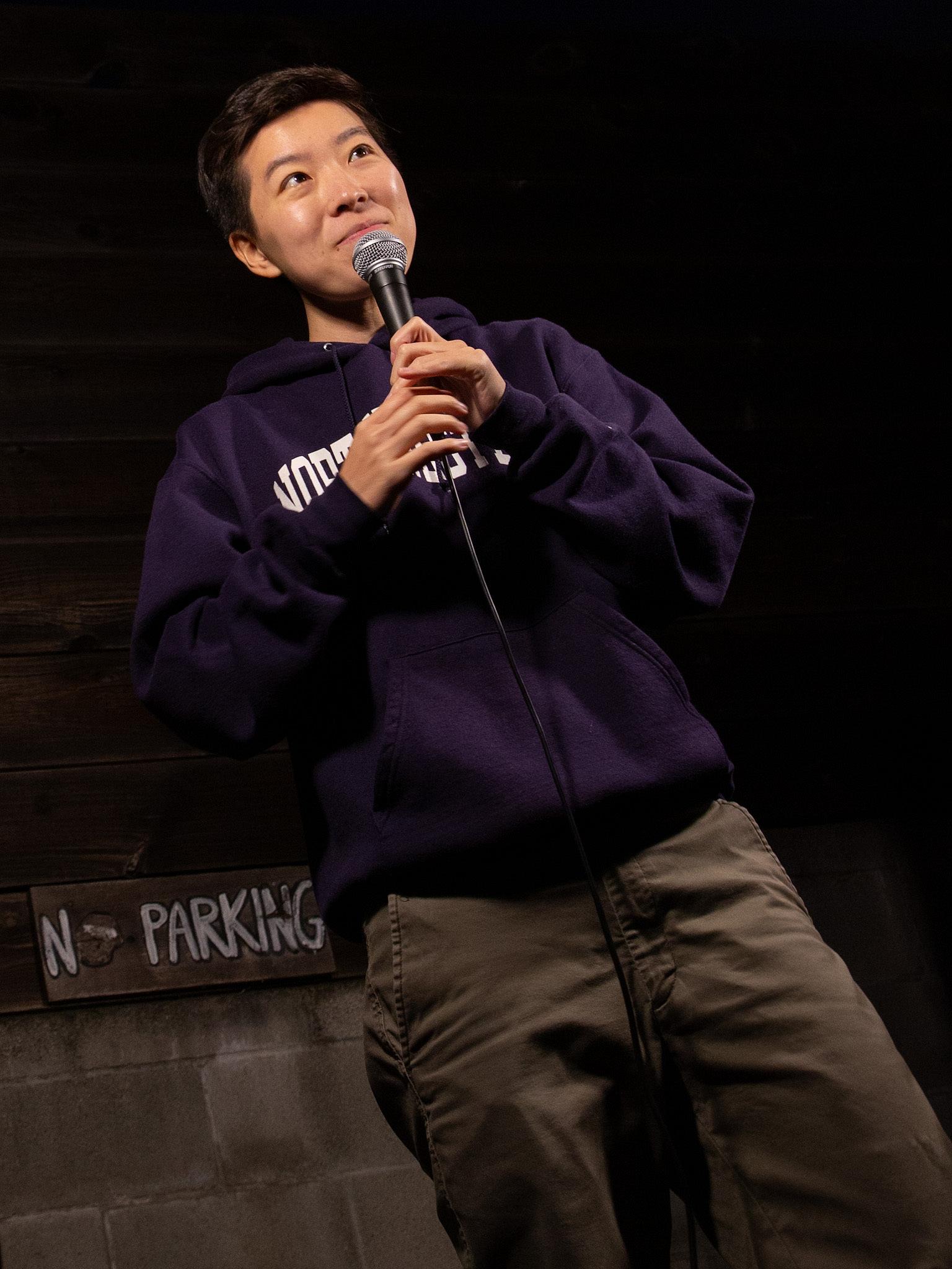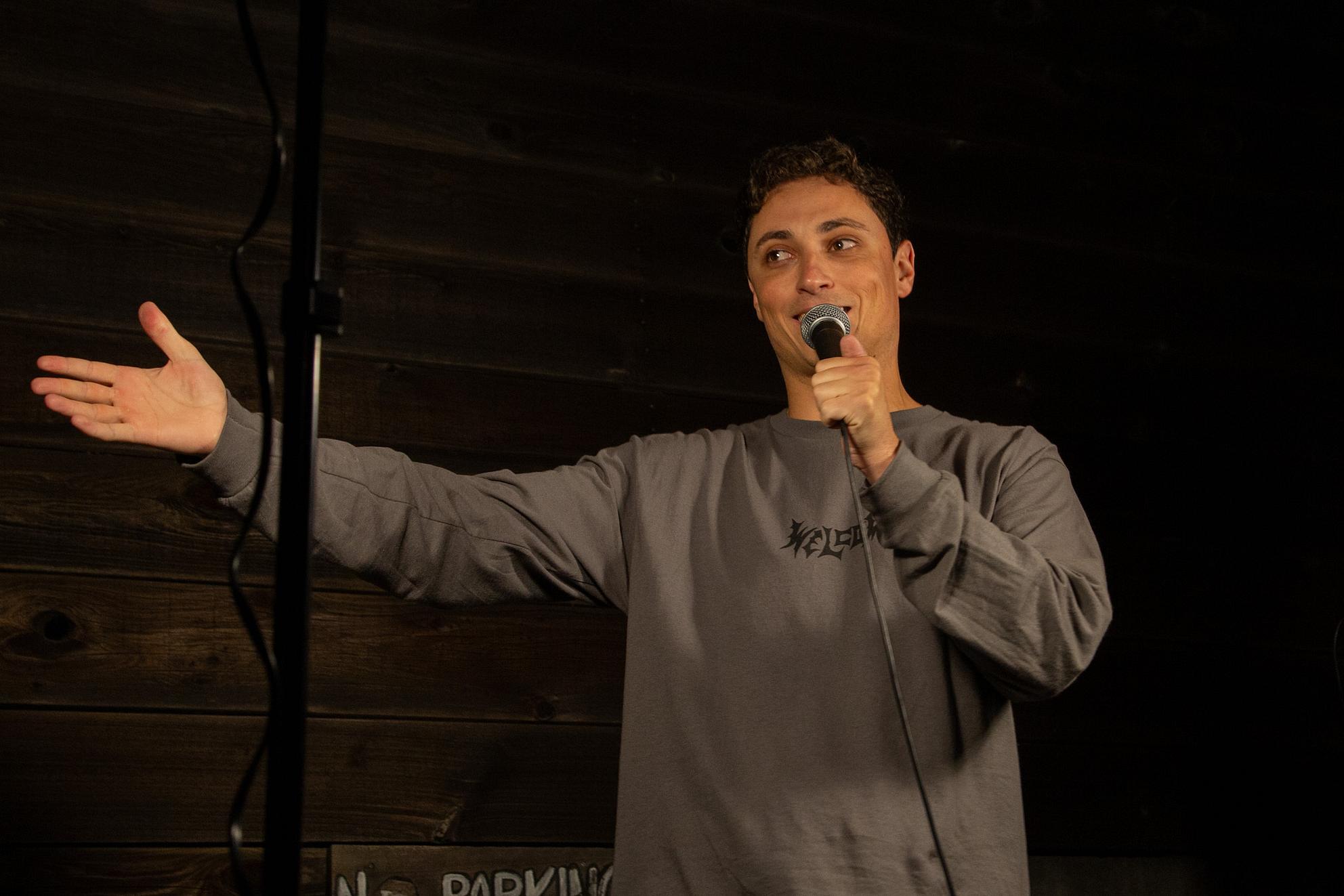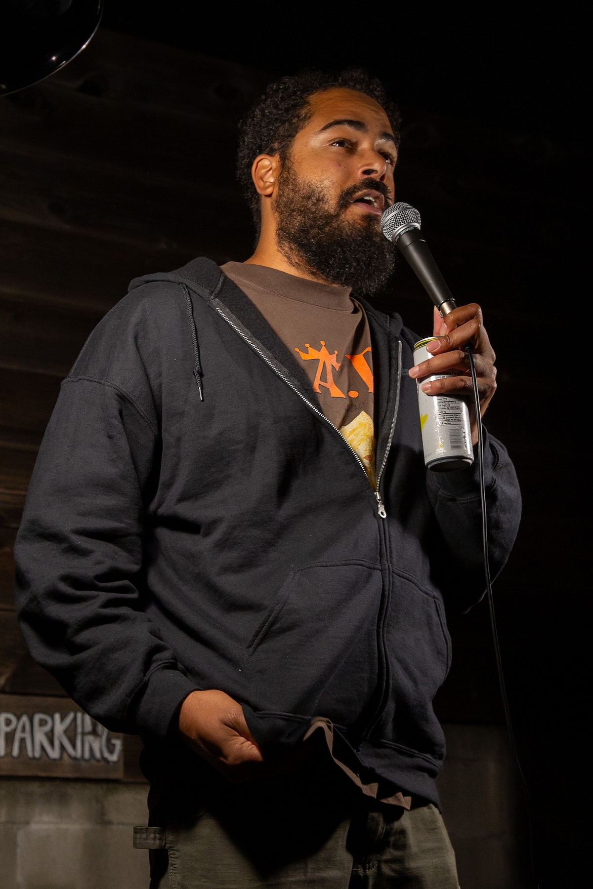 The stage, an aging pallet with a piece of graffitied plywood on top, stood astonishingly close to the rows of plastic folding chairs. I sat in the frontest of rows. (There were three.) I glanced at the roughly two dozen other guests and joked with my neighbors about tripping on the stage or nearly sitting in the comics’ laps.