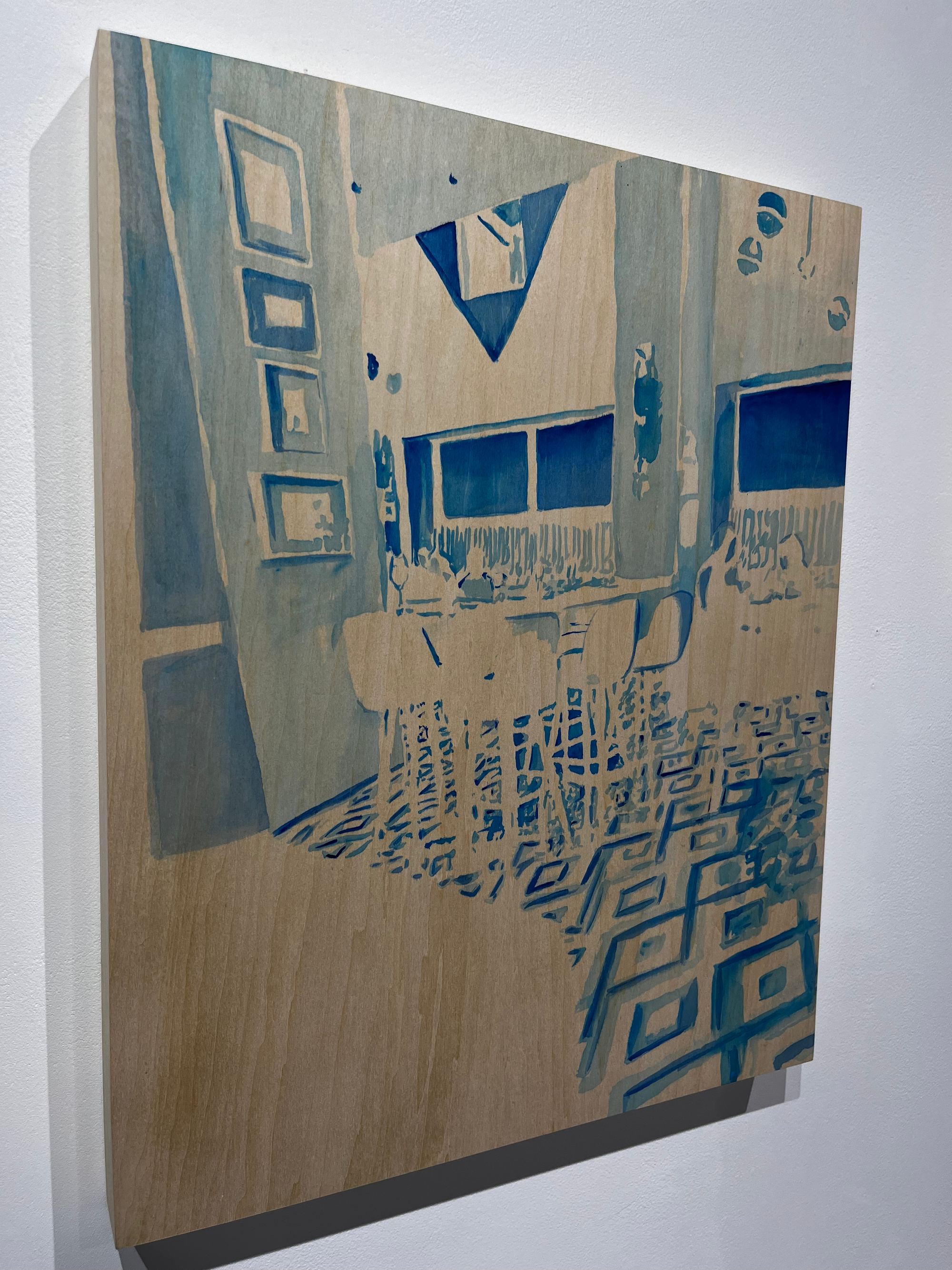 All the work in the show emerged out of that dinner conversation, and it’s all as keenly considered and packed with ironies as those plates. Even the show’s title suggests a double meaning: the French phrase for “everything in its place” can refer to the organization of ingredients in a fine dining kitchen, or maybe to the position restaurant workers find themselves in, with limited options for straying from “their place.” The beautiful dining rooms Del Rio painted on birch wood, in shades of placid blue, look like something out of the magazine Kinfolk; they’re both visually delicious and absent of people, a reminder of how exclusionary spaces like this can be for the people who make them run.