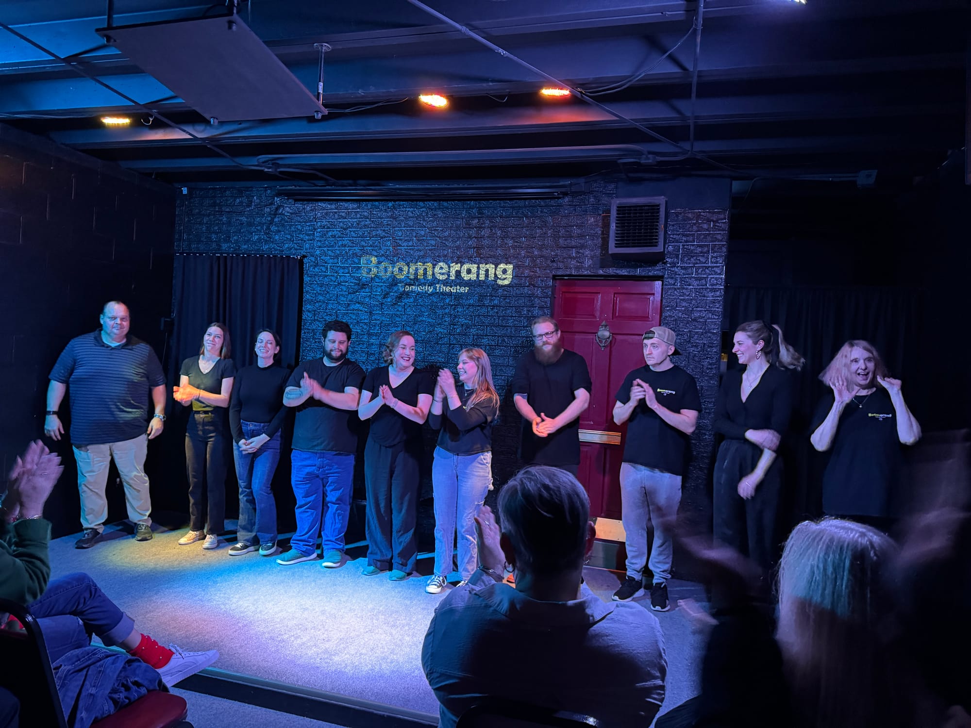 Their long-form improv takes the form of La Ronde, a character-based improv structure that rotates between members of the group, two at a time. After the initial scene, one person stays on stage in character. A new character comes to the stage to interact with them.