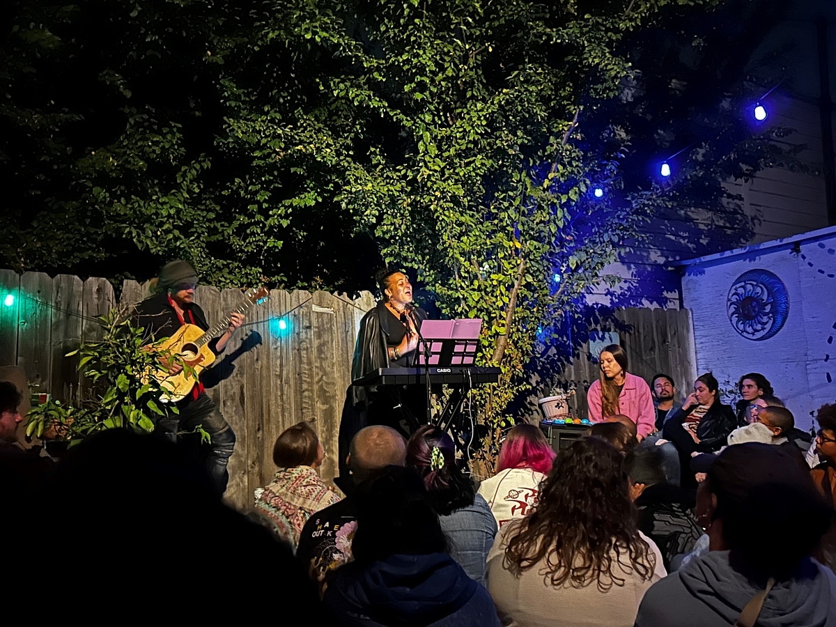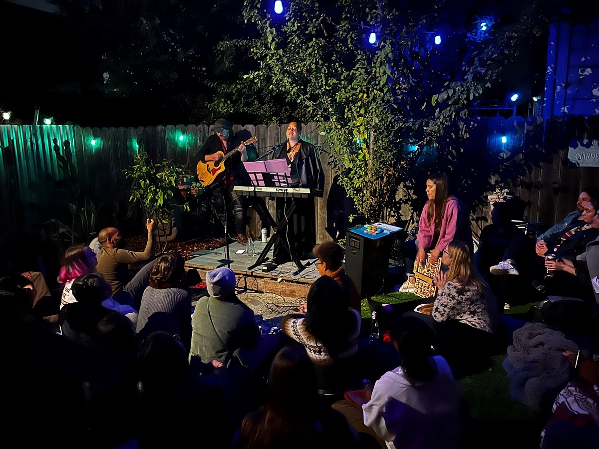 The backyard of Towne Cycles on Oakland’s Adeline Street hummed with clinking cans and whispered pleasantries as Danielle Helena, a hometown-raised singer-songwriter who has been building a national following, took the stage as part of Tiny Garage Concert Series’ program on Friday’s Autumn Equinox.