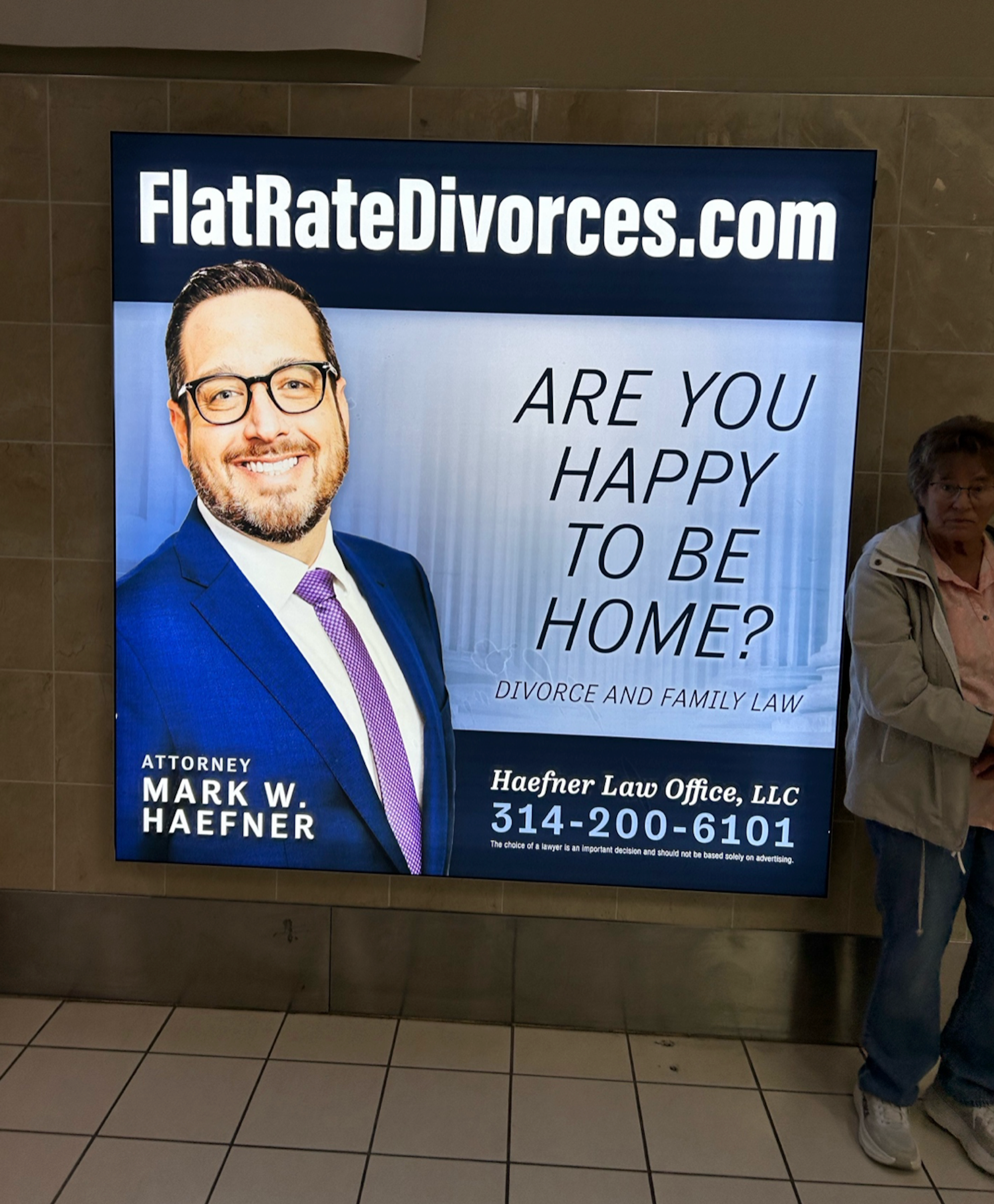 March 25: St. Louis. I read and sign at the public library. I am interviewed onstage by former Westville resident, novelist Gavriel Savit. But first, on deplaning in the airport, I see the saddest ad ever: