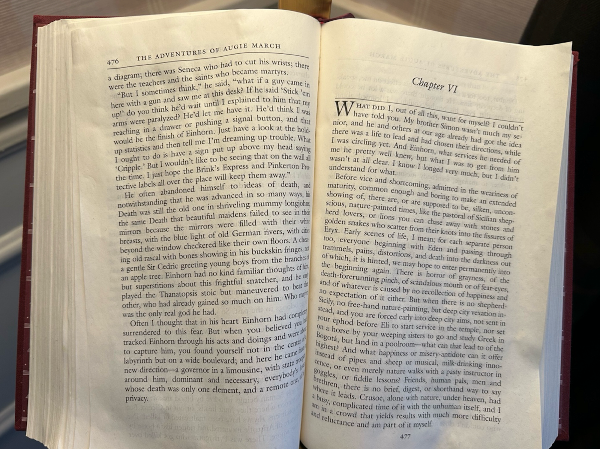 March 17: Winnetka, Ill. I read at the Book Stall. My sister comes to see me read. The hotel where I stay, The Graduate, in Evanston, is Chicago-themed, hence this copy of a Saul Bellow novel on a stand in my room: