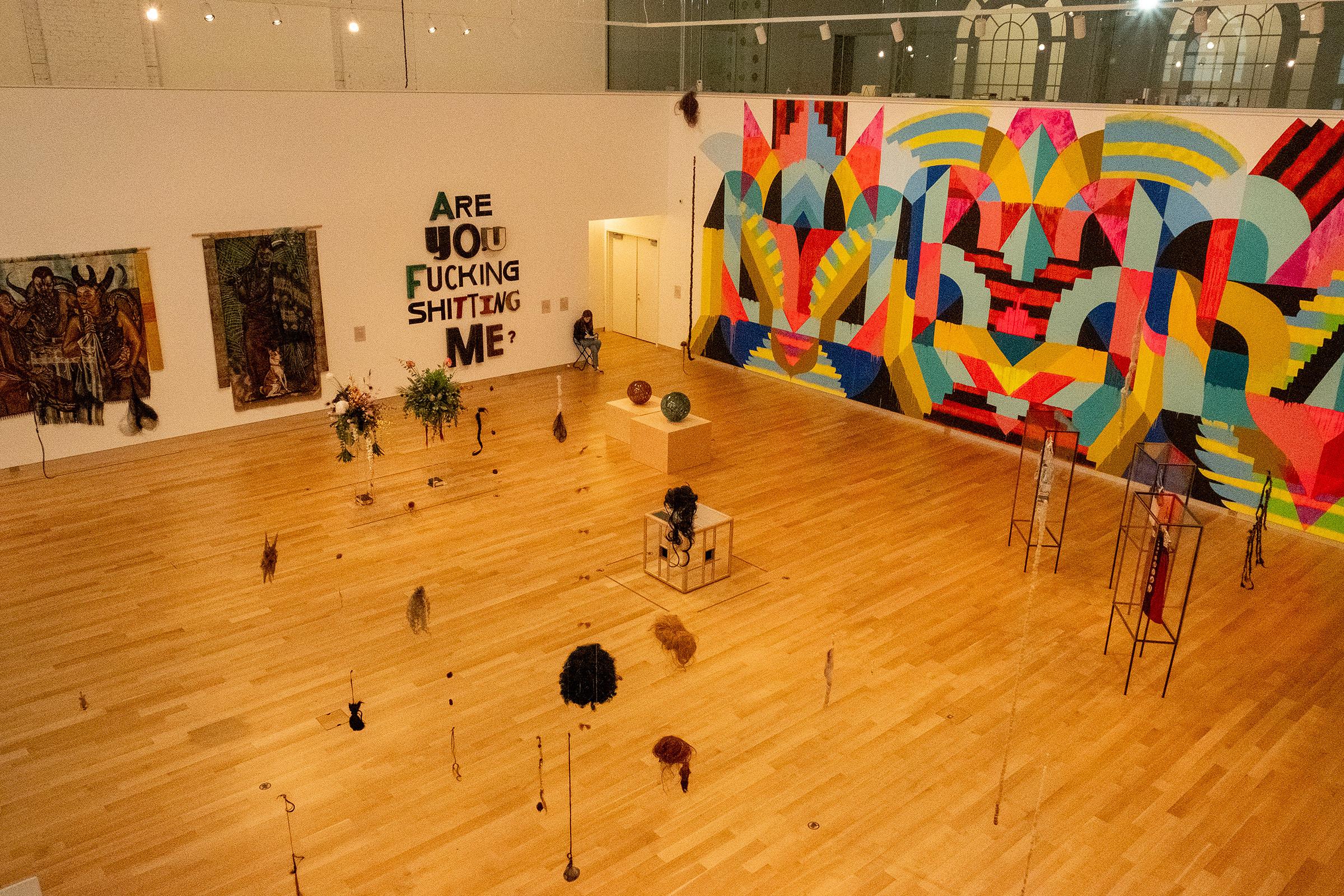 The upper level of the museum explores how painful experiences can be transformed into innovation and looks toward the future. Art from Jack Pierson ’86 takes the prompt of authentic expression literally, repurposing the abandoned signage from marquees and diners into a giant sign which reads, “Are you fucking shitting me?” It seems to serve as a caption for the entire upstairs gallery and its tongue-in-check refusal of the expected.