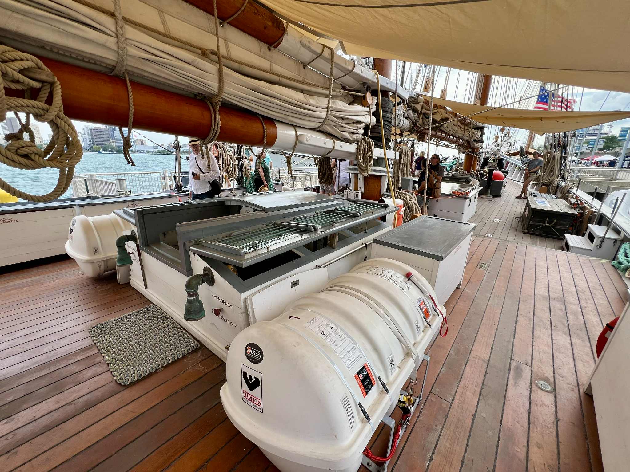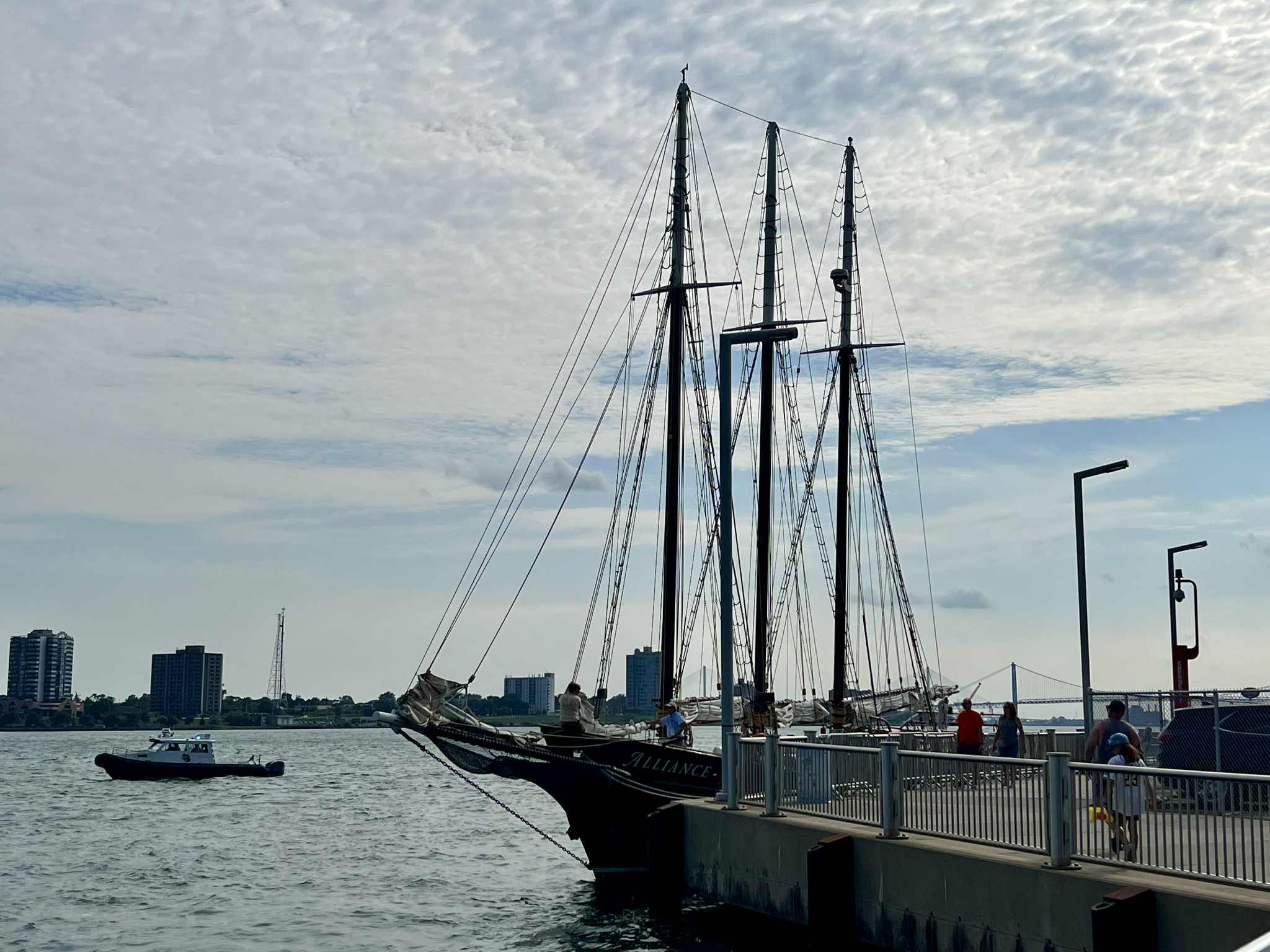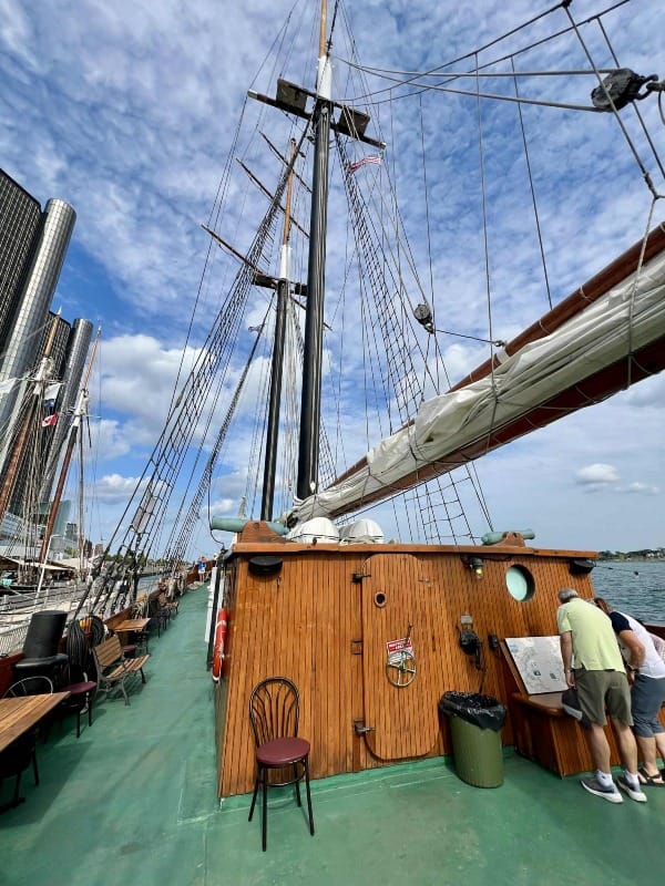 The 105-foot Alliance was the only boat offering cruises along the Detroit River, which were sold out, and visiting the boat while docked did not appear to be an option while I was there. Based in Suttons Bay in Northern Michigan, the Alliance is a frequent visitor to Detroit and is primarily used to teach about the Great Lakes ecosystem. It was built in 1995 but designed with a traditional, late 1800s-style rig. Though I couldn’t go aboard, it was fun to see it sailing around the Detroit River.
