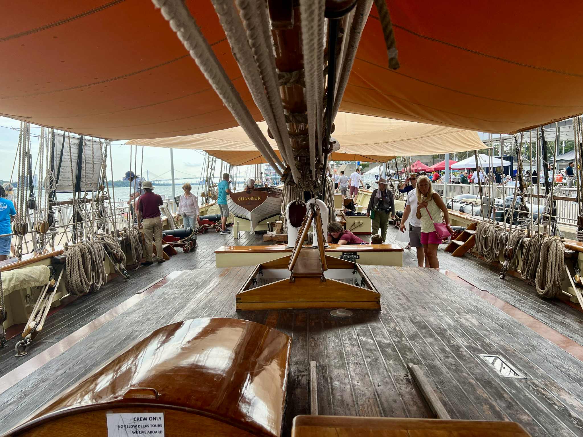 I spent the most time speaking with the second mate on the Ernestina-Morrisey, who lived on the boat full-time with the rest of the 12-member crew. She said the crew included the captain, first and second mates and deckhands, plus a boat mechanic/engineer and chef. I was surprised to learn that most of her crew were women – which she attributed to as making up for lost time, as ship crews had largely been made up of men – and that they had to do their laundry at laundromats while at port.