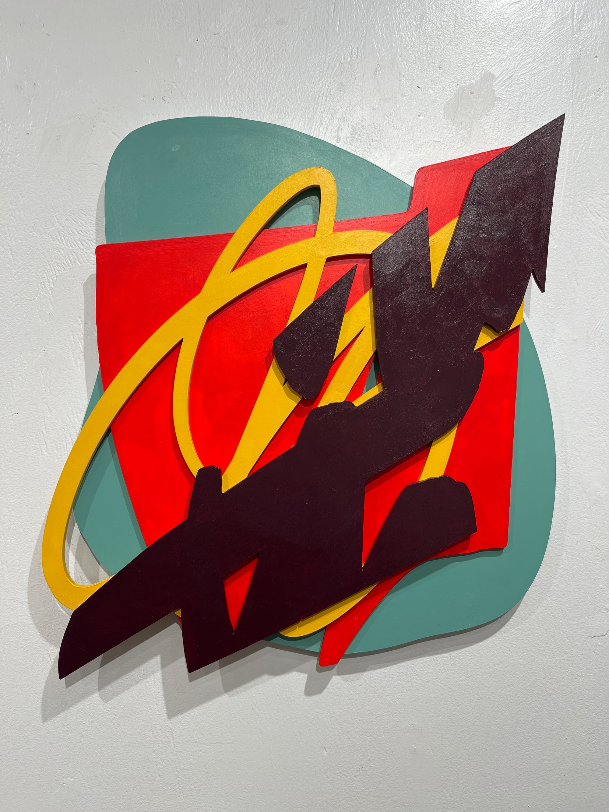 All of the works in “Wordplay” start with a source word, which Yang (a printmaker who runs Flash Flood Print Studios in Kendall Whittier) then begins to play with in ways that range from typography to laser cutting. She writes the word, draws it digitally, morphs and expands it, traces it onto fibreboard, cuts it, paints it, layers it with other cut and painted shapes. By the time a piece is finished, the source word itself is so abstracted and obscured as to be nearly lost. It’s no longer a standalone thing but a catalyzing event that creates an interplay of meaning-making forms—which reveals much more about the word itself than a literal representation would. We never know what her source words are for each piece, nor do we need to. What we see is what they are.