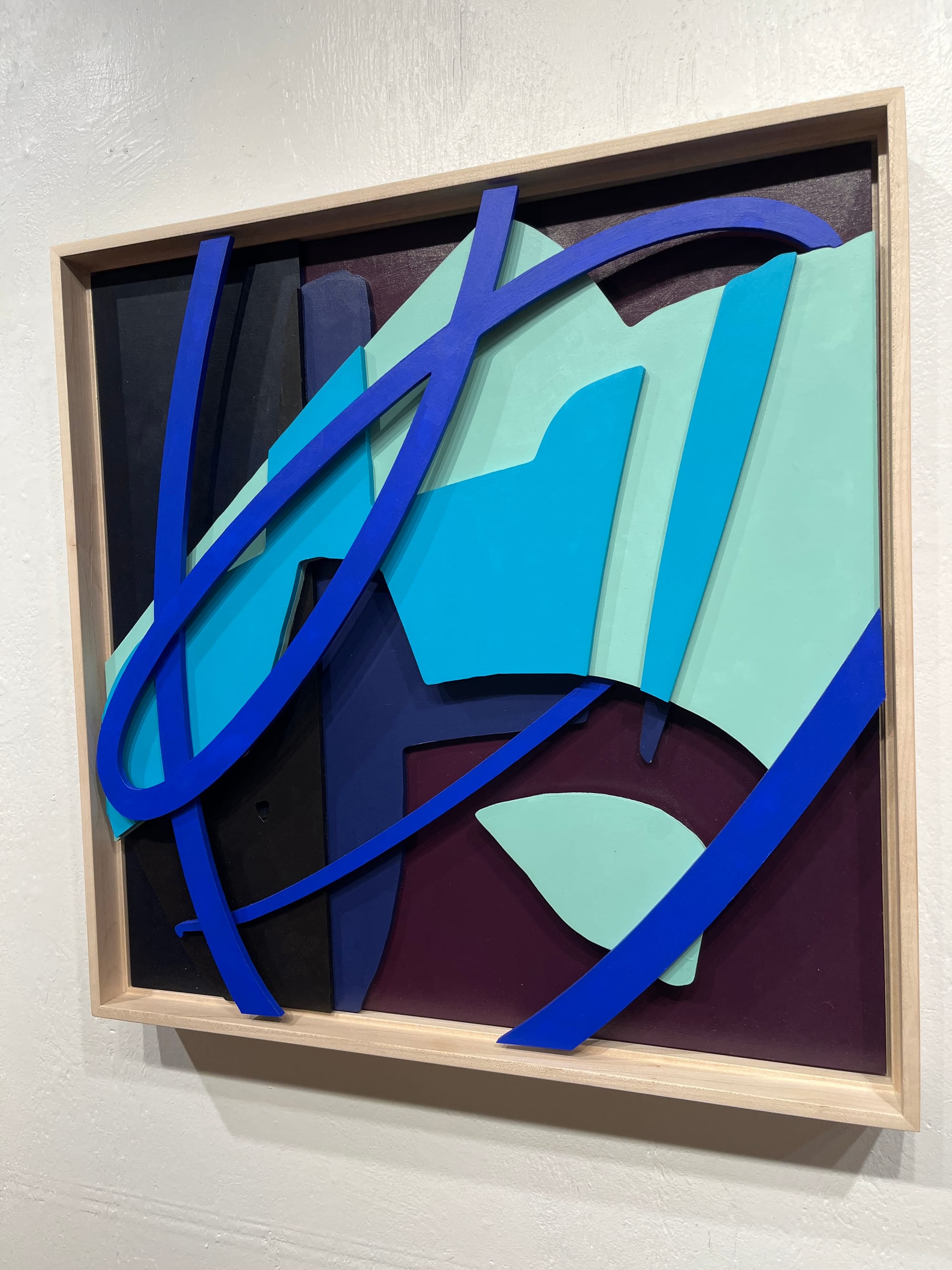 I wanted to get around the edge of each piece, see into it from the side, look between the stacked shapes and through the funky maze of angles. The further in you go, the less individually coherent these shapes get, and the more they become about the ways they communicate with each other. Thin curves tuck behind chunky brushstrokes; pieces insert neatly into each other or push at the edges of the frame; lines take nonlinear pathways; strong diagonals read like the flourish of a pen at the end of a signature; conjunctions make echoes and shadows that become forms of their own; foregrounds draw the eye to backgrounds and vice versa.