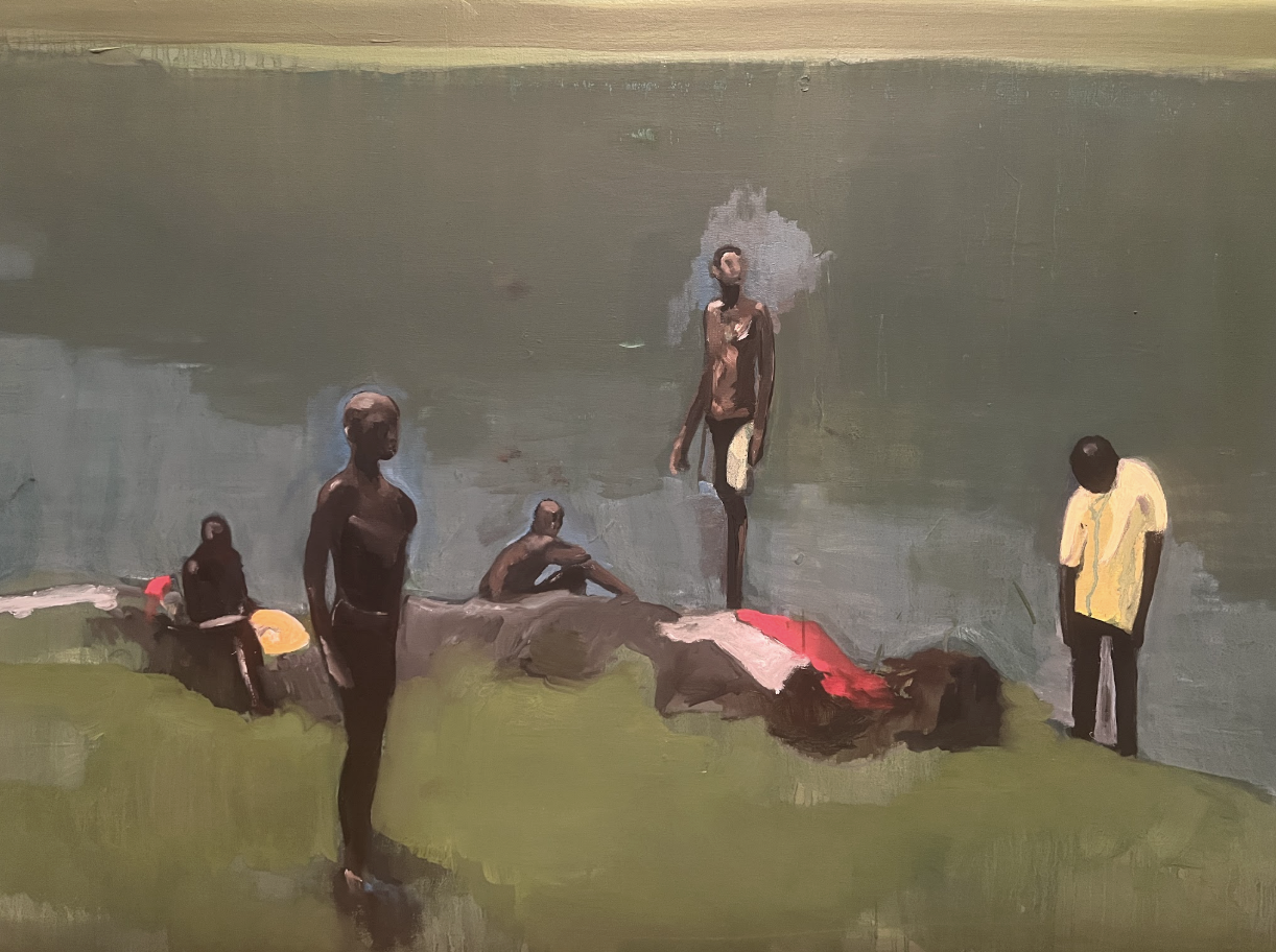 I hadn’t paid the small white figures much mind before: it wasn’t my immediate thought to consider a spiritual or mystical presence in many of Davis’ works. In this moment, Noah’s attunement to a sense of magical realism was revealed to me. In retrospect, this sensibility reverberates throughout his oeuvre: He often uses enough just detail in his figures for one to approximate age, musculature and setting, but then leaves just enough for us to fill in the gaps for ourselves. He has created a body of work where viewers can find themselves in whatever way makes the most sense for their own stories and experiences.