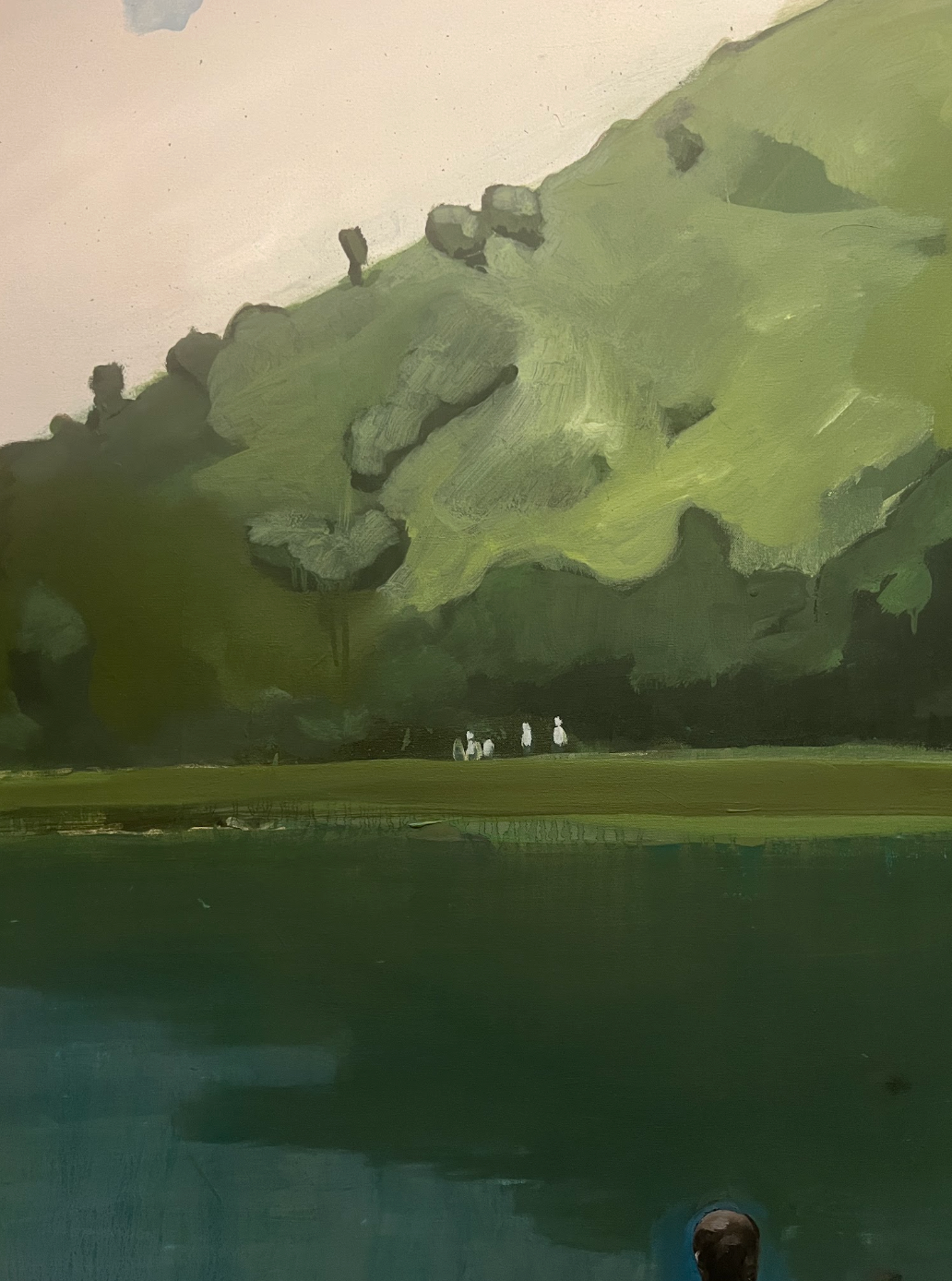 Congo is a painting based on a photograph taken by Davis’ brother on a trip to Africa. It elicits memories of more distant terrain, of human subjects spread across a ubiquitous lush. To some in the workshop, it recalled the landscape and weather of Panama, Brazil, Florida. So skillfully, Noah translated someone else’s perspective — an old photo — into a seemingly universally felt experience.