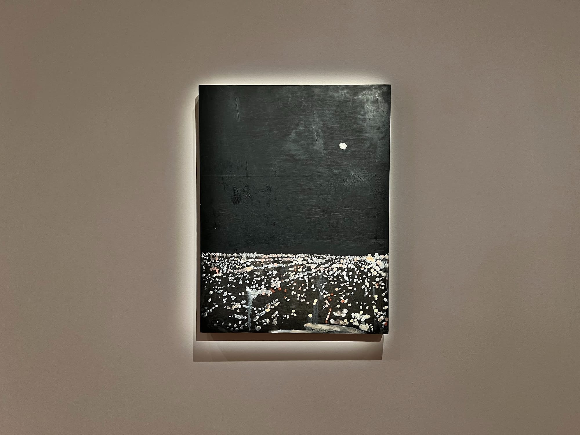 This is all true, and, to me, LA Nights further mirrors the specific isolation unveiled by sprawling cities. We know that this image represents millions of residents, and yet we can’t see a single person. We can’t reach them. I’m reminded of sitting in many a red-eye alone, looking out of the window as the plane descends, observing the expansiveness of it all; trying to imagine where these hundreds of thousands of people are, what they are doing and if they feel as I do in this kind of liminal zone, unsure and unclear. It’s not so dissimilar from the feeling I’m carrying into the exhibition today.