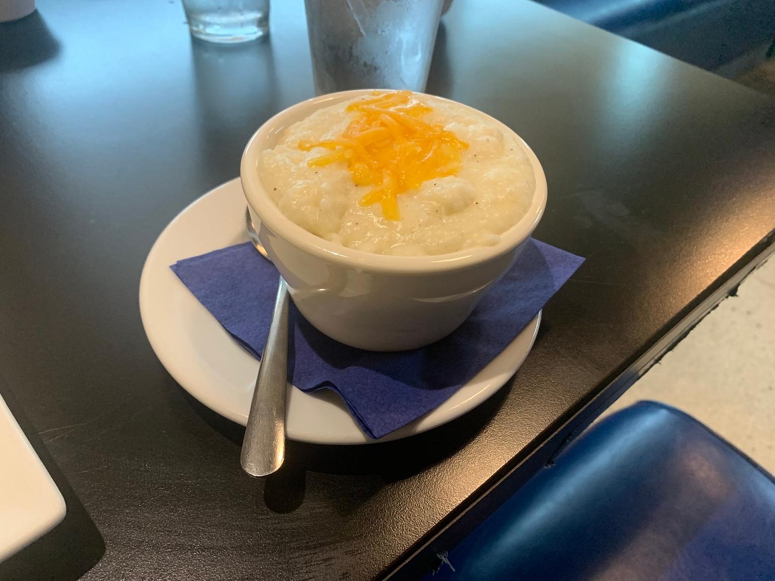 I had some grits too. There’s probably no breakfast dish more revealing of a cook’s skill than grits. They’re easy to make, but also deceptively easy to mess up as well. The grits were the best side by far at this meal. They were creamy, with just the right amount of salt and pepper and enough cheese to be welcome but not obnoxious.