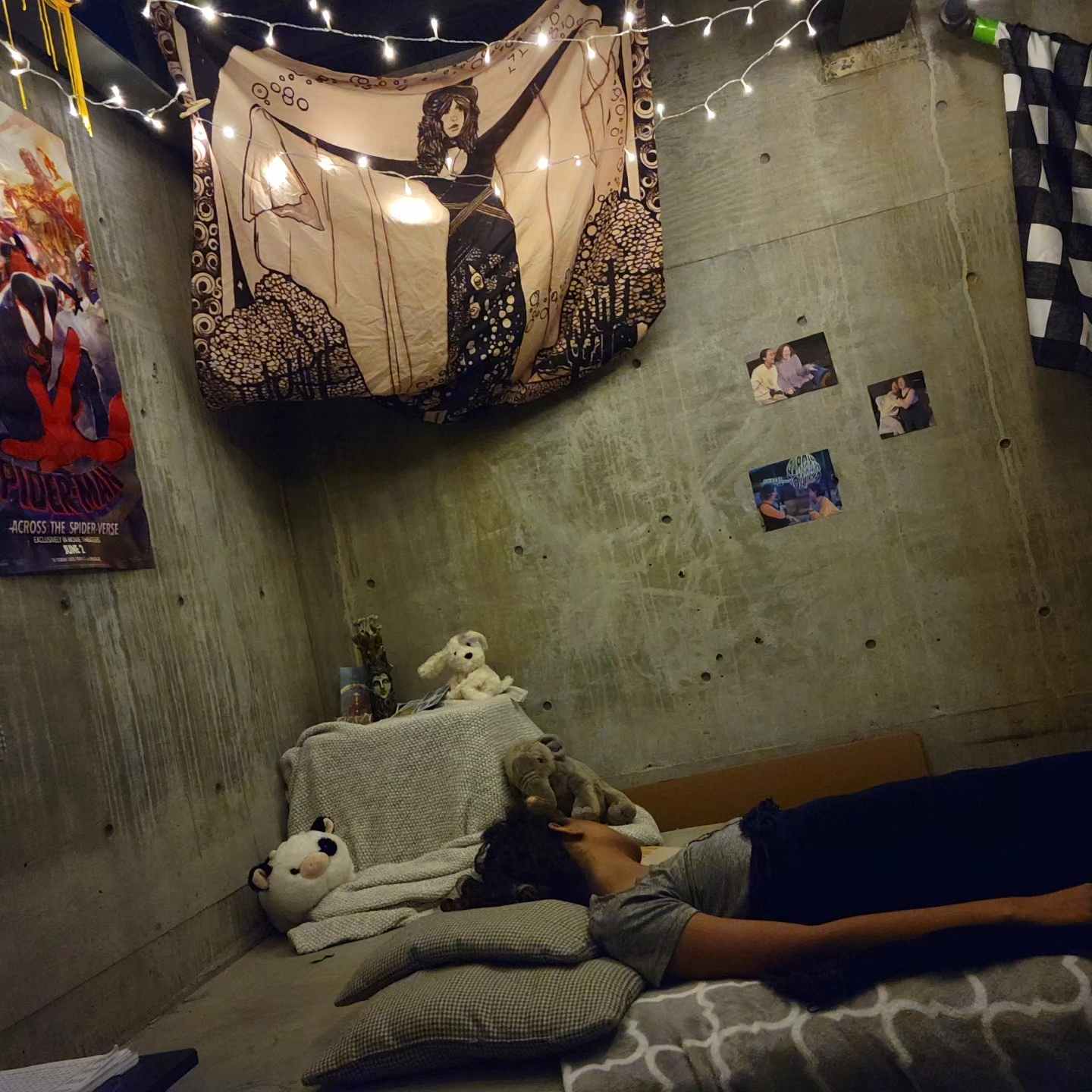 We gathered in the main gallery for snacks and instructions before being split into groups and taken through the building to see six short plays in succession. Heller Theatre Company is known for experimenting with the boundaries of theatrical experience; here, the plays’ directors set up their scenes in all manner of spaces, with simple lighting and props turning nondescript rooms like the media lab into zones where horror could unfold. After many hours sitting in theater seats and at a laptop in recent days, I appreciated the chance to walk through the action. (Kudos to the actors, who performed each play nearly 20 times during the run.) I wouldn’t have minded an experience that was even more continuously immersive, but maybe that gets dangerously close to haunted house/GUTS Nightmare territory. The caution tape and excellent bloody footprint stickers on the floors here were probably plenty.