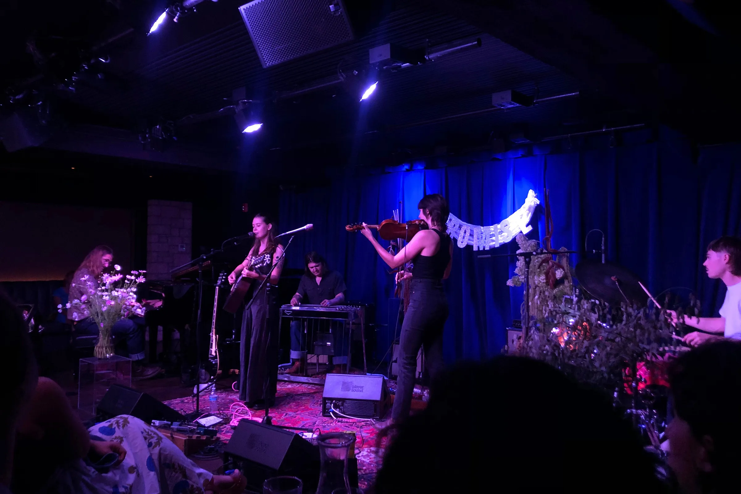 For a singer-songwriter whose songs feature on a Spotify playlist named “broken love songs to feed your misery,” Charlotte Bumgarner’s music inspires a surprising amount of joy when heard live. On stage, decked out in pink bows and surrounded by floral arrangements, Bumgarner is much more fun than the Boygenius-adjacent vibe of her recorded songs — a contrast that was especially apparent at the recent release show for her new EP, “Promise.”