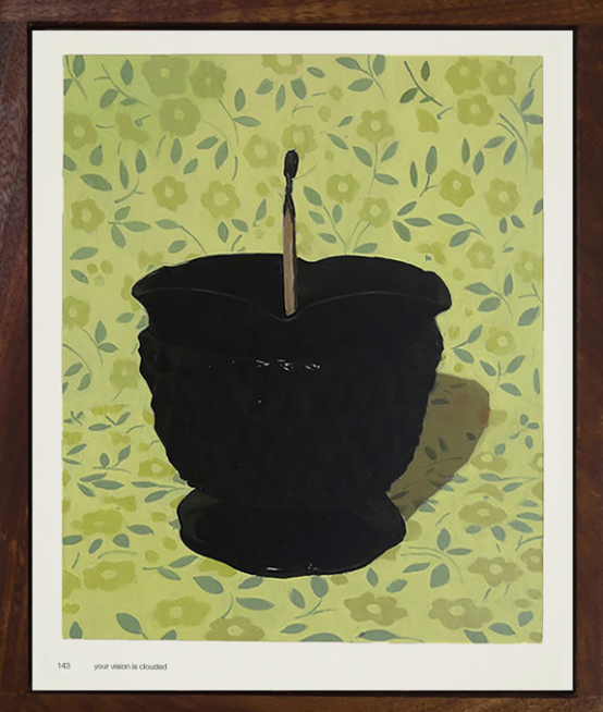 The slight size of these works forces us to lean into every image, to narrow our focus until we feel that we are within the painting. They function like cells of emotion; every artwork is a still life shrouded in some kind of action or thought. There is a sense of resigned vitality streaming out of Cedar's interest in overlapping entities.