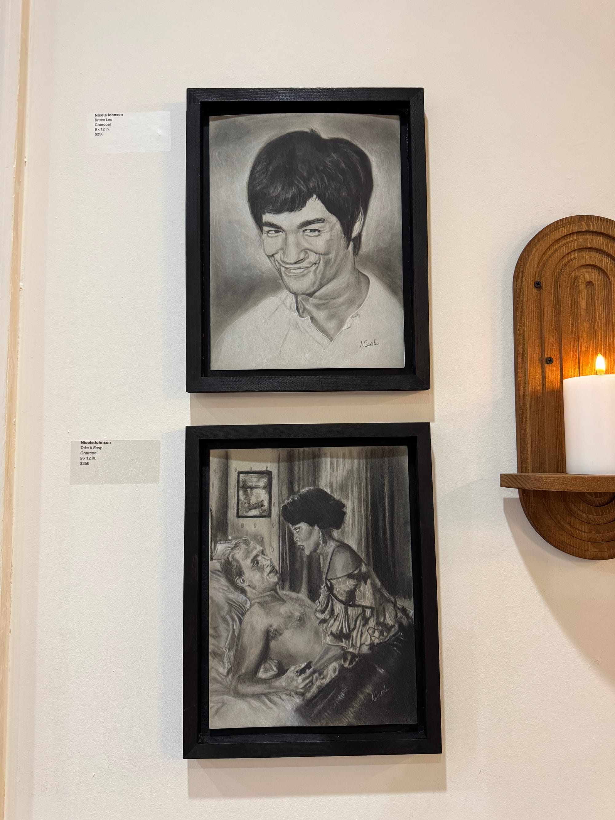 Johnson’s art is focused on other people, and it also brought people together. Going to art gallery receptions is one of the best hacks for socializing in your twenties. There’s food, there’s wine, there’s a natural conversation piece and no expectation that you’ll buy anything. Johnson’s reception was anything but a serious affair where people solemnly look at the art in silence. Conversation was lively and people were meeting friends of friends and even strangers. If more art receptions were like this, everyone would go.