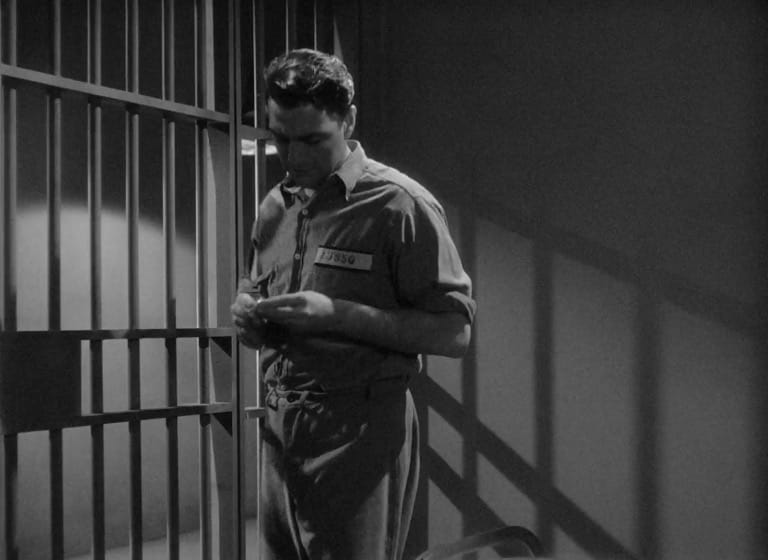A shadow of a noose with a pair of shoes sets the scene. Tom Quinn's (Don Castle) dark eyes stare out mournfully from behind bars. Other inmates quietly observe as Tom's last meal passes them by; Quinn declares that he will not be eating it. One con, in an attempt to cheer him, plays what just might be the most depressing piece of music by Chopin on repeat. His incarcerated neighbors encourage him to speak and tell them how he came to be on death row. Quinn refuses, choosing instead to sit in silence and remember. All while he is clutching a photograph of his wife. His inner monologue begins.
